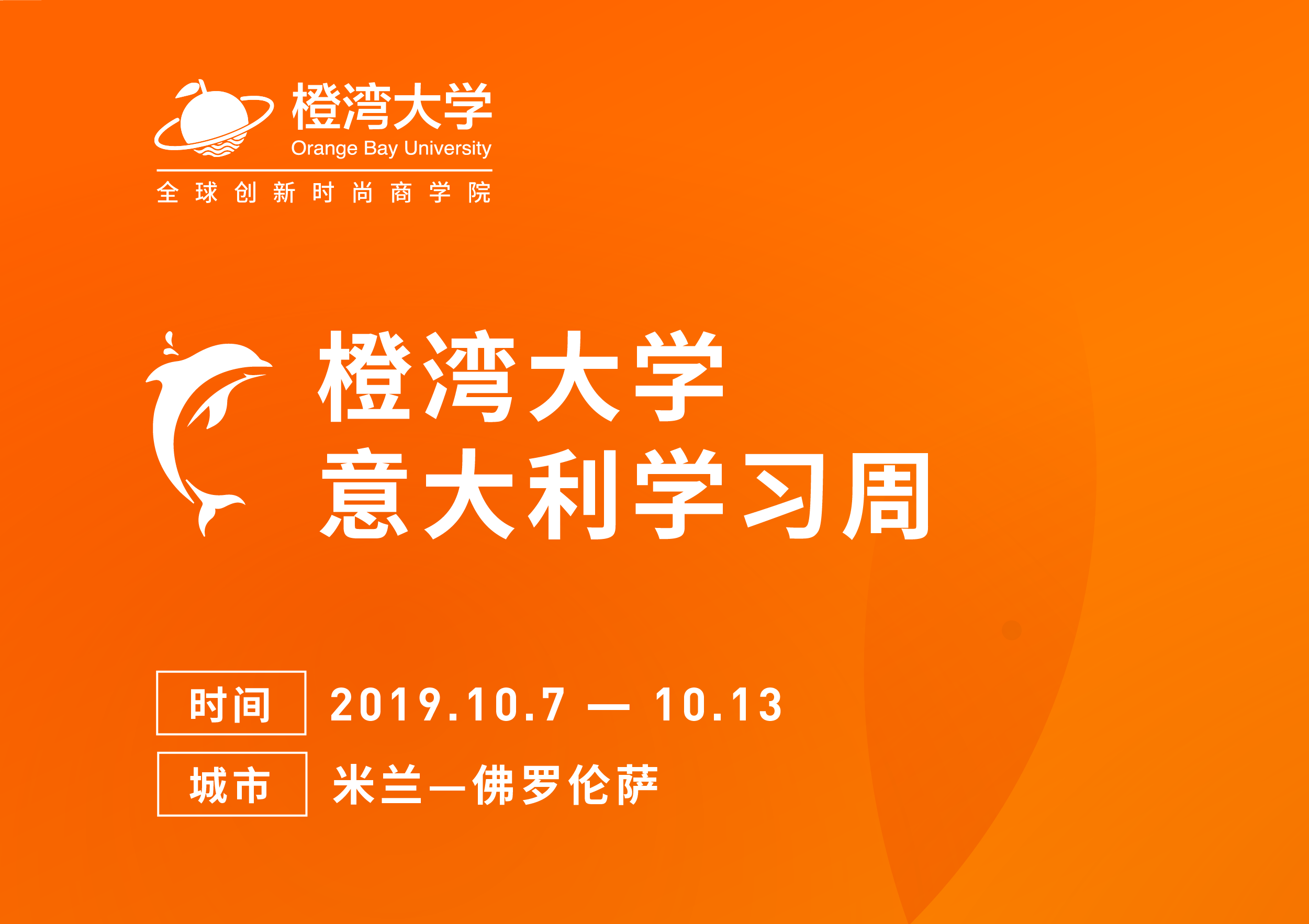 2019年10月7日—13日,橙湾教育将组织“橙湾高级管理课程”在读学员前往意大利开展一周的游学活动,并特别开放有限名额给期待探索意大利时尚产业生态的朋友们。