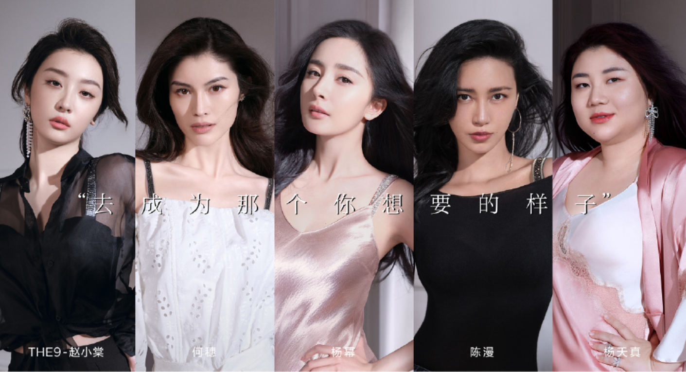 此次维密的三位品牌挚友与两位品牌代言人杨幂、何穗,代表的是不同年龄、职业、尺码的广泛品牌受众,她们也是品牌形象“人格化”最直接的映射,强调真实、多元。