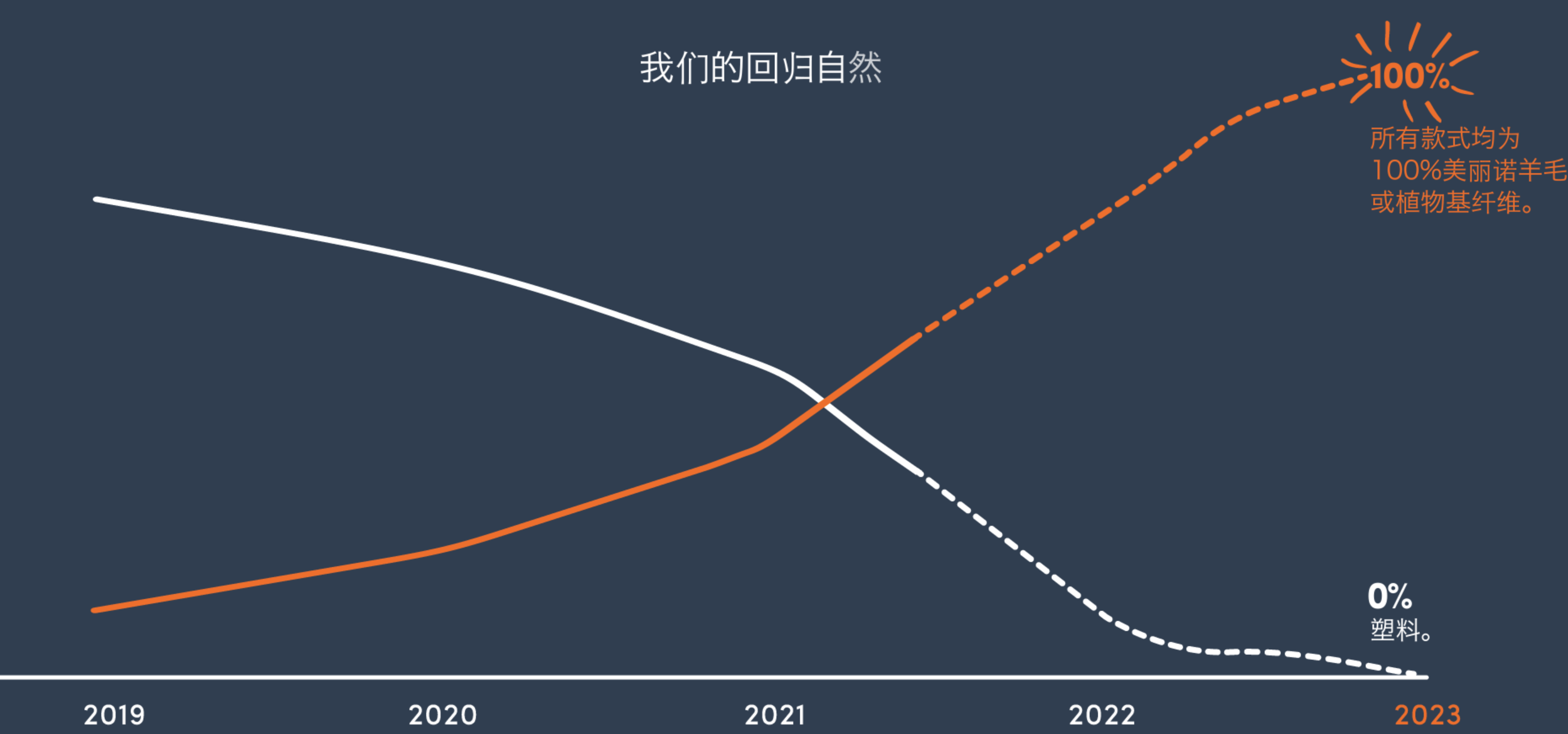 据 icebreaker 透明度报告,品牌的目标是到2023年实现无塑化,追求100%天然。目前在产品方面,icebreaker 的无塑纤维目标已达成91%,产品合成纤维使用量仅占9%(主要是为增强产品弹性、韧度等添加的少量氨纶、尼龙等)。