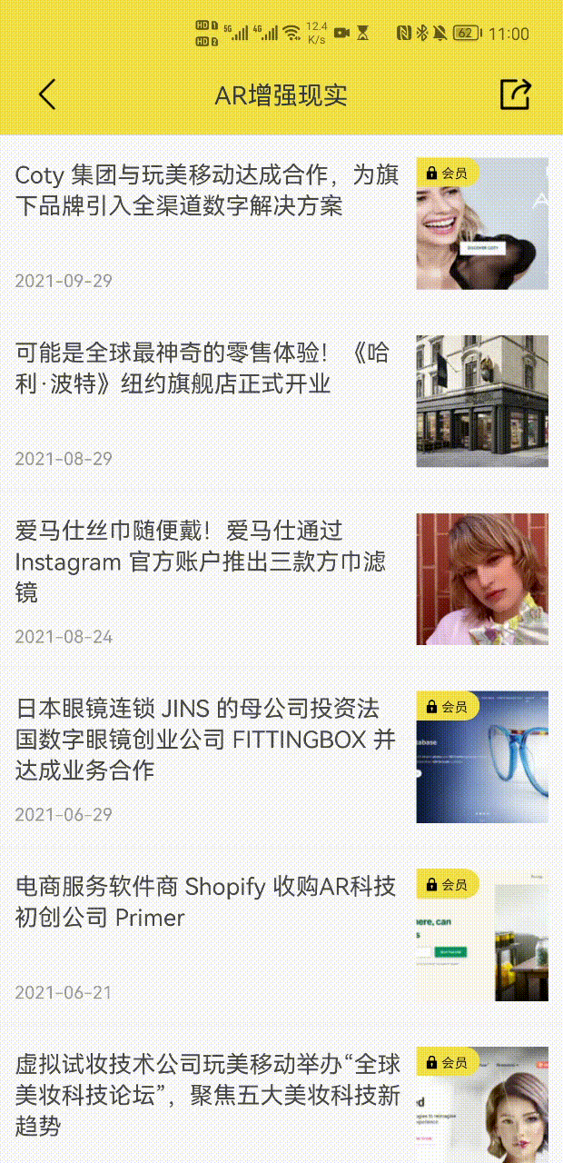 在华丽志App查看关于AR在时尚领域的应用资讯,路径如下: