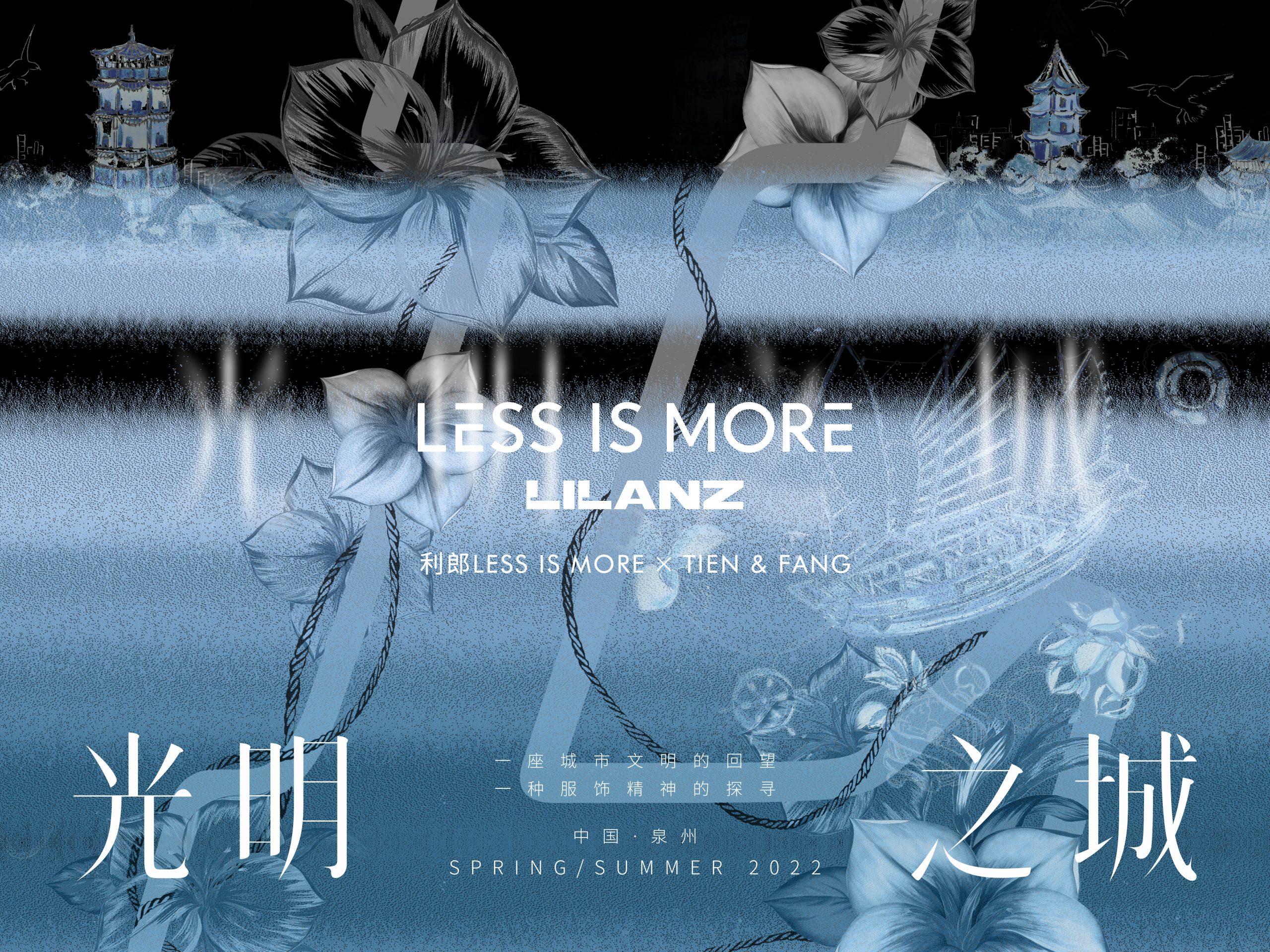 这是中国著名男装品牌利郎 LILANZ 旗下青年时尚系列 LESS IS MORE 携手两位新锐设计师吕典霖( Tien Lu)和方芳带来的闭幕大秀。从海上丝绸之路的起点,到上海时装周的秀场,LESS IS MORE 2022 春夏系列以“光明之城”为主题,溯源利郎品牌的诞生地:泉州,将一座古城的独特魅力融入到当代男装的设计细节中,邀请观众共同回望一座城市的文明历程、探寻一种当代的服饰精神。