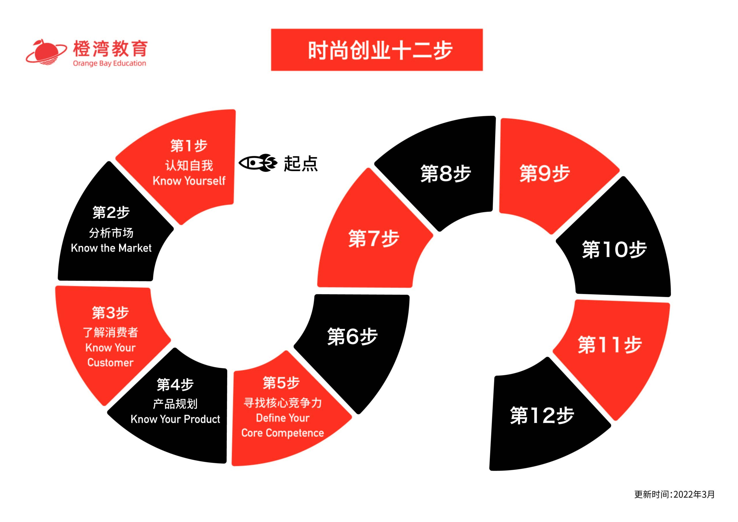 “时尚创业十二步”是橙湾教育基于自主开发的500余个海内外优秀时尚和生活方式品牌案例,结合不同背景的创始人的成长经历,总结出的一套时尚创业方法论。分12个步骤剖析了品牌的创业、创新和增长路径,对于时尚和生活方式领域的创业者、投资人和经营管理者都具有相当高的参考价值。