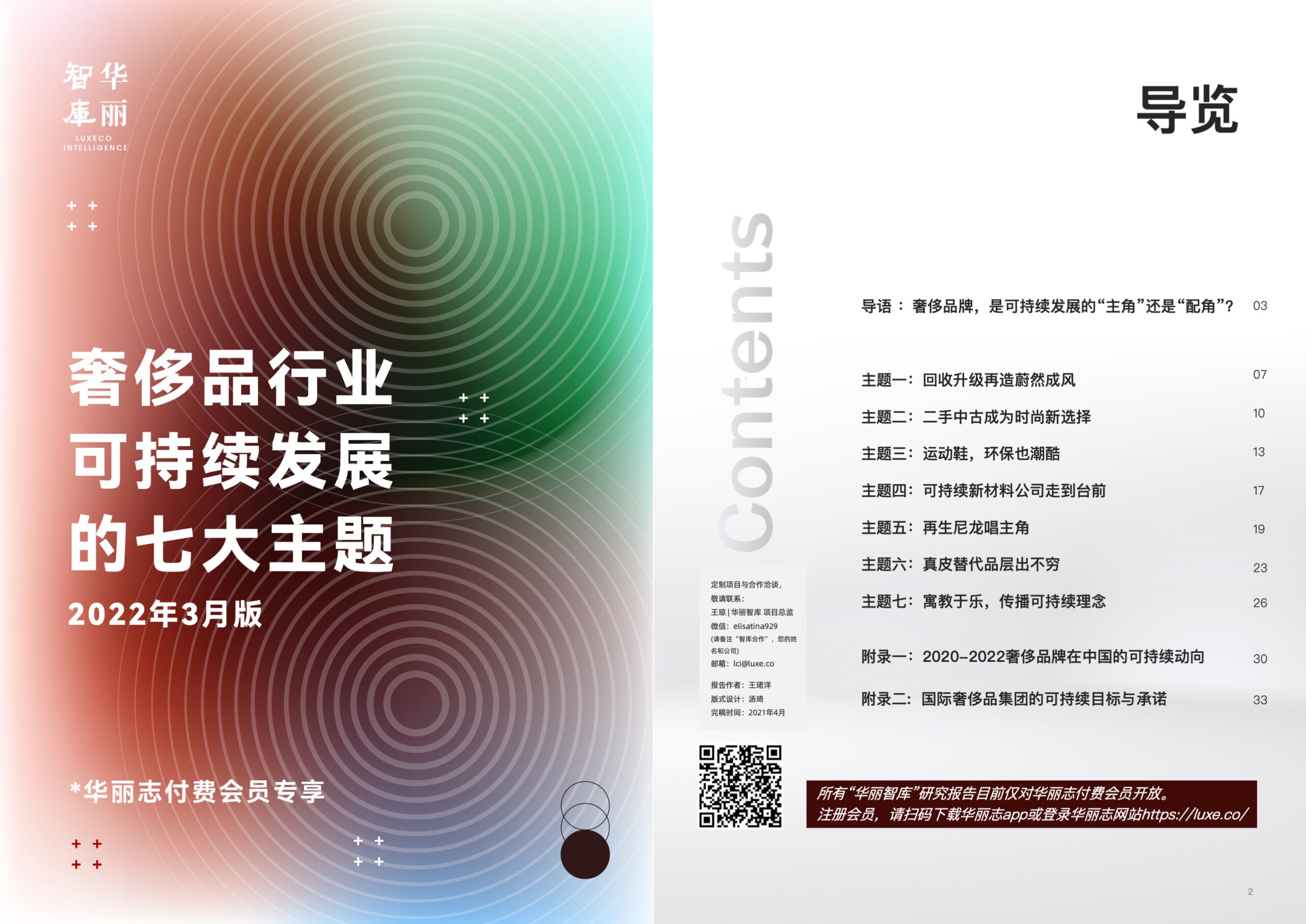 【华丽智库】独家研究报告《奢侈品行业可持续发展的七大主题》总结了过去两年来全球奢侈品行业可持续发展的七大主题及32个代表性案例,并列举了10家企业集团的可持续目标与承诺。扫描以下二维码,或点击此处,下载报告查看详情。(限华丽志付费会员)