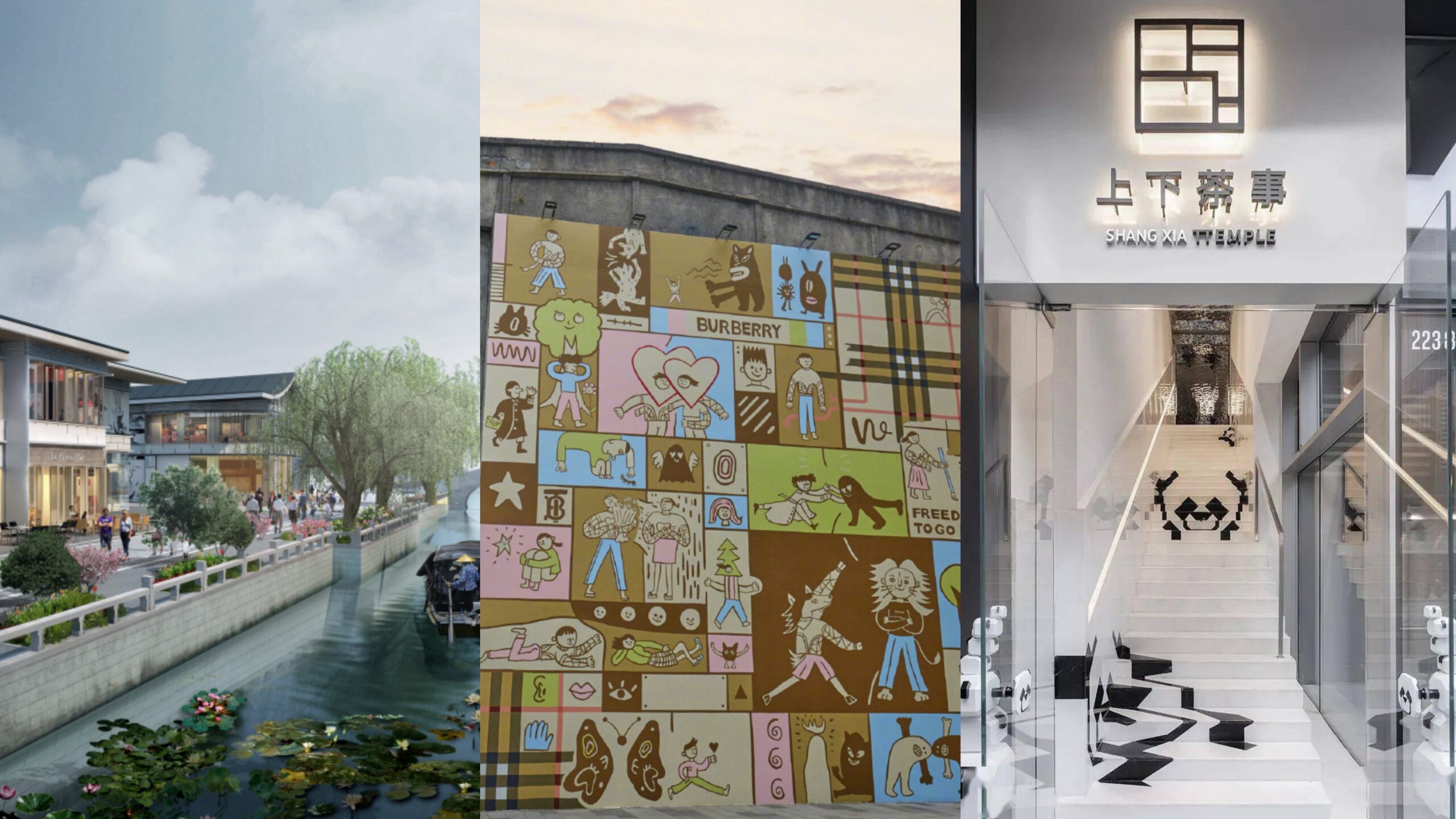 上图:苏州仁恒仓街效果图;Burberry 成都东郊记忆园区外墙绘制“爱之八芒星”主题插画;「上下」成都远洋太古里全球首家「上下茶事」