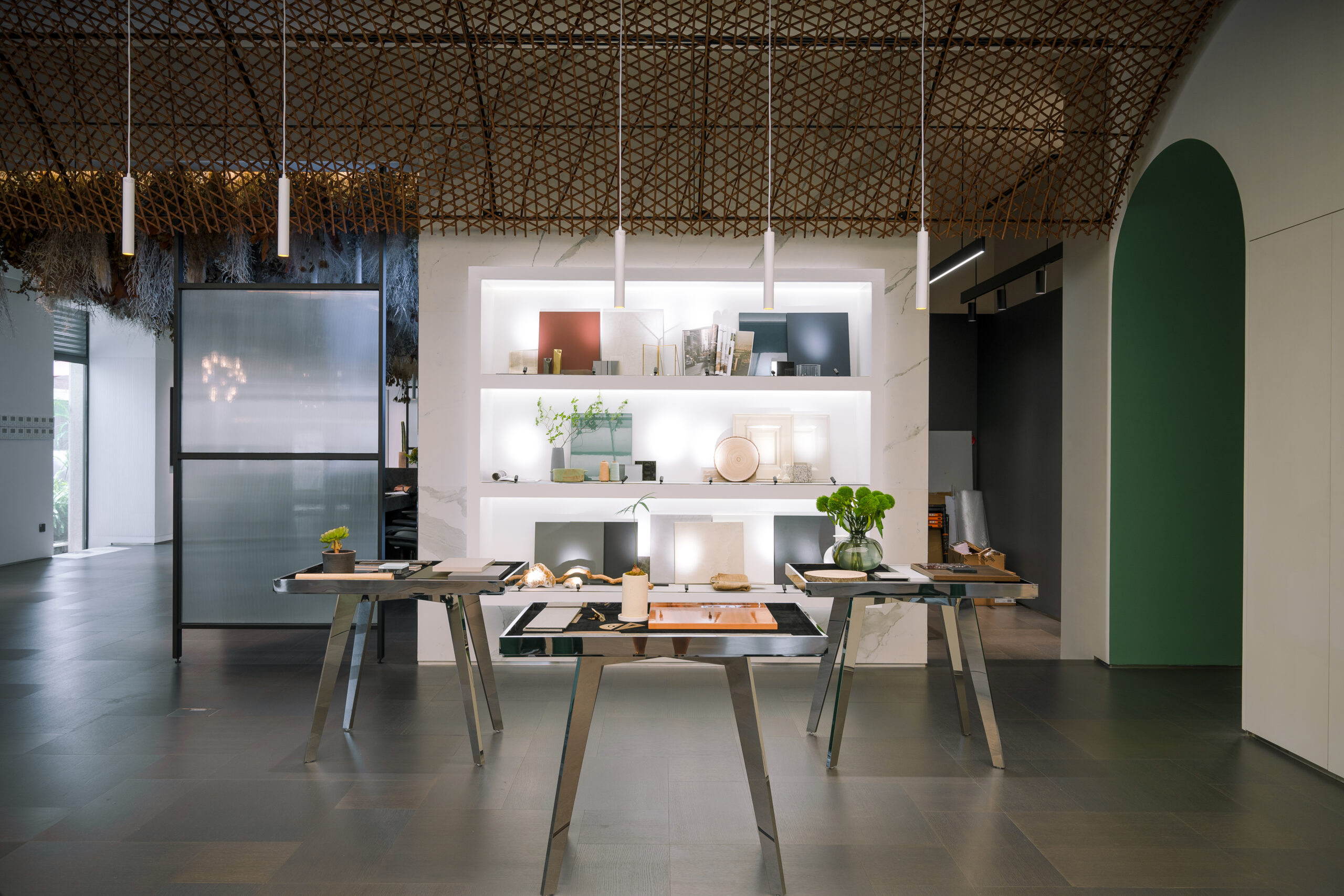 全新的上海体验中心便是集团为此迈出的第一步,在体验中心入口处悬挂着由浙江的藤编手工艺人编制的一块藤编天花板吊顶(下图),“在品牌德国总部的展厅中,也有一处类似的装置,但用的是当地特有的植物制作,未来的新店设计中,我们也会更多地结合当地文化和当地生活元素”,林晓伟介绍道。