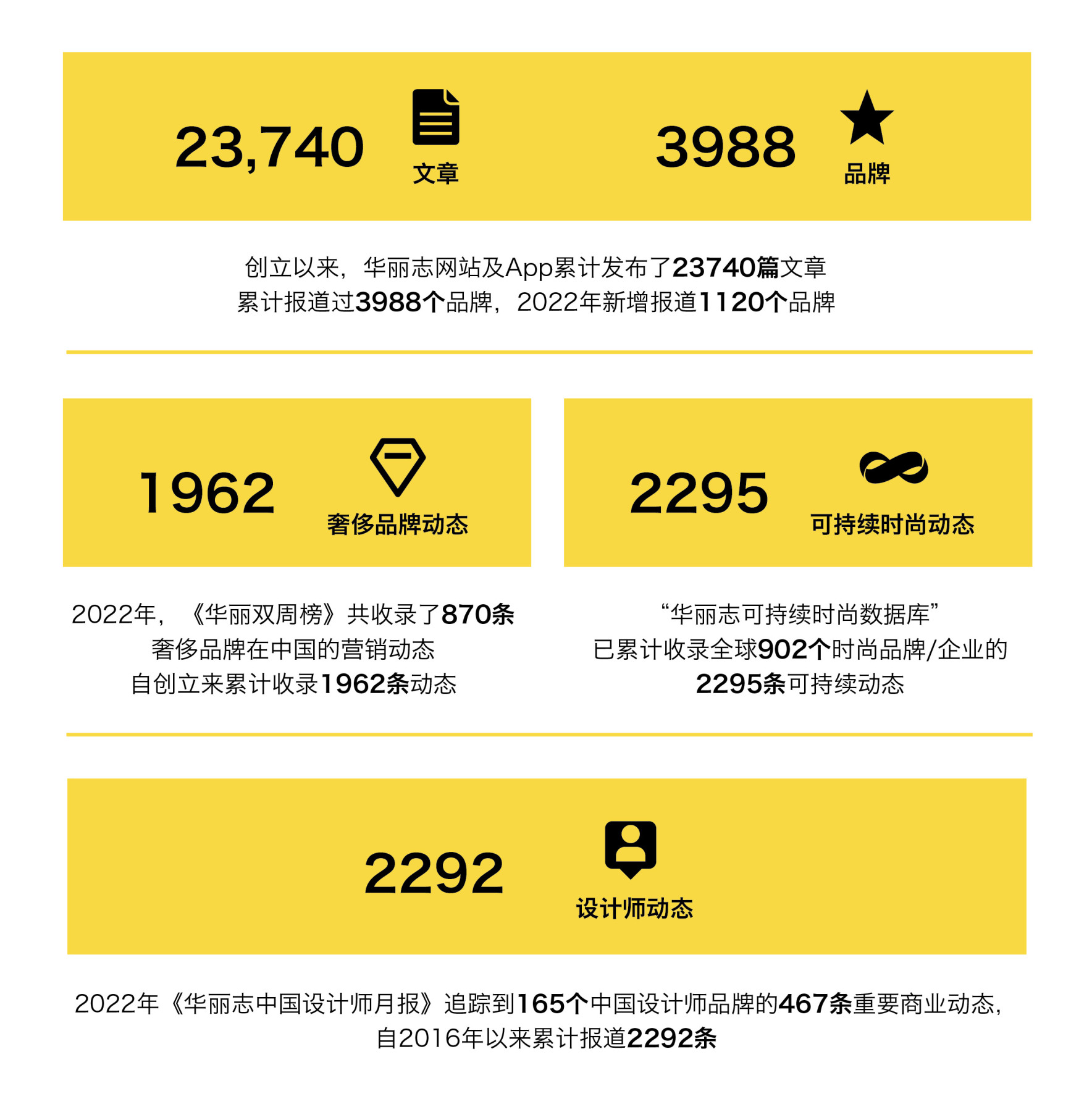 迄今,华丽志已累计报道了全球超过3988个奢侈品、时尚和生活方式品牌;而在2022年,就有1120个品牌首次登上华丽志的平台,为历年来数量最多的一年!