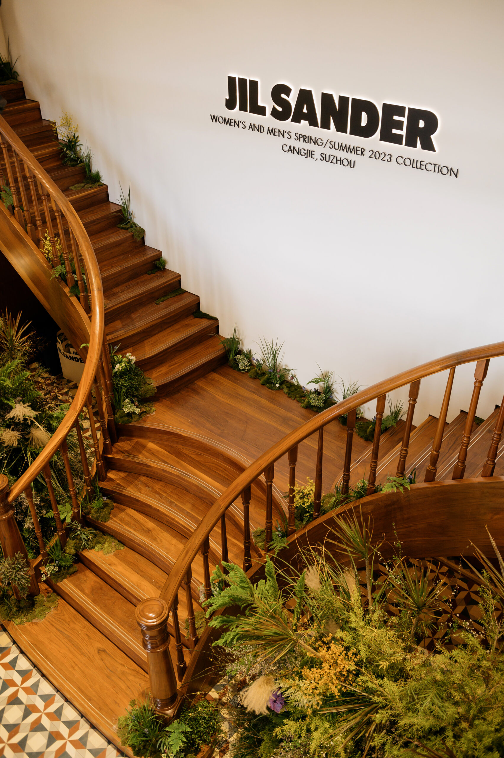 JIL SANDER 在这栋修缮后的民国建筑中融入了2023春夏秀场中的标志性视觉元素,并在限时店一楼设有专属植艺区域,展出专为品牌打造的植艺作品。这座全新的叙事空间不仅彰显了JIL SANDER 品牌的设计美学,更增添了独一份的苏式意象。