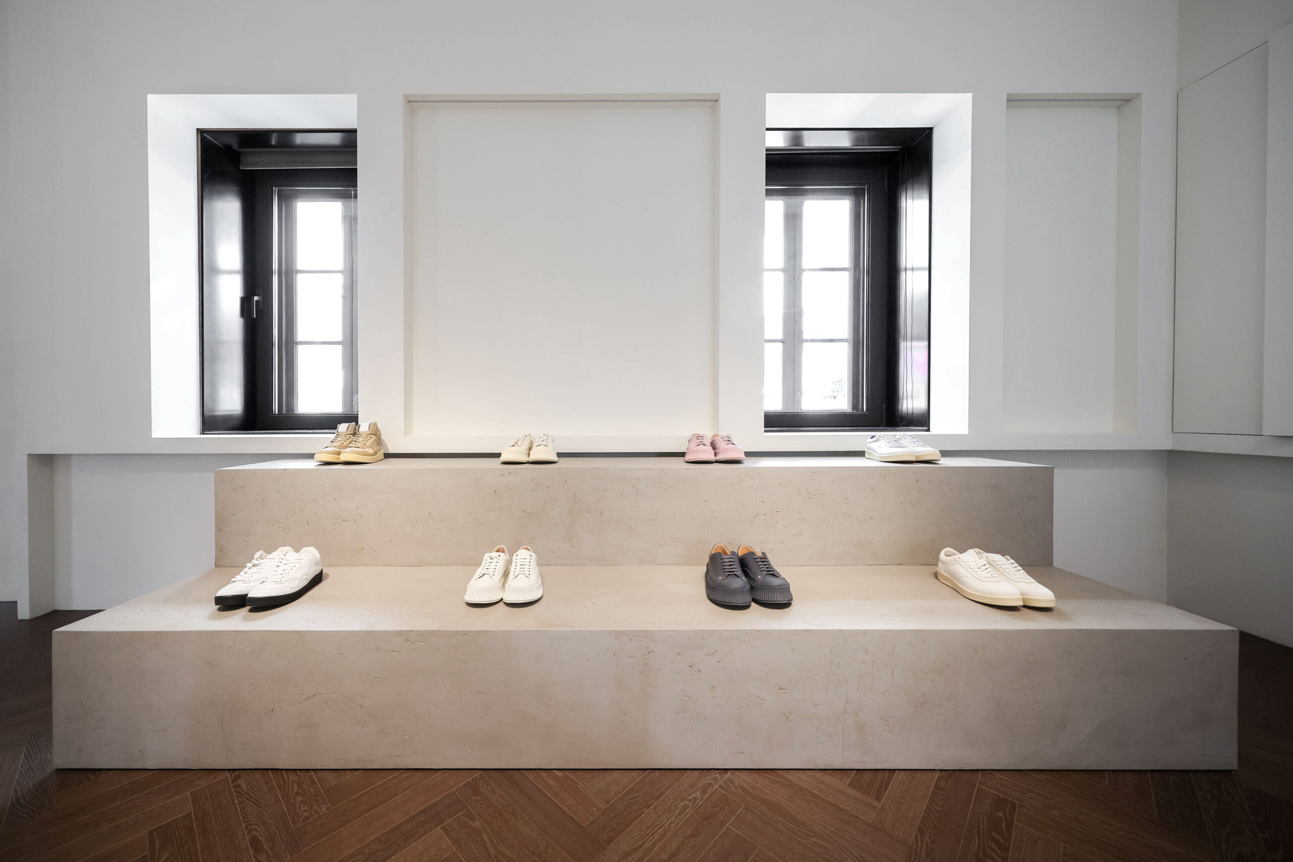 两层空间里展示了JIL SANDER 2023女士早春系列单品、2023春夏男女混合系列秀场单品,以及JIL SANDER+功能产品支线等。近年在社交媒体上出镜率很高的Goji 手提包、饼干鞋等悉数亮相,更有不少限量款供选购。