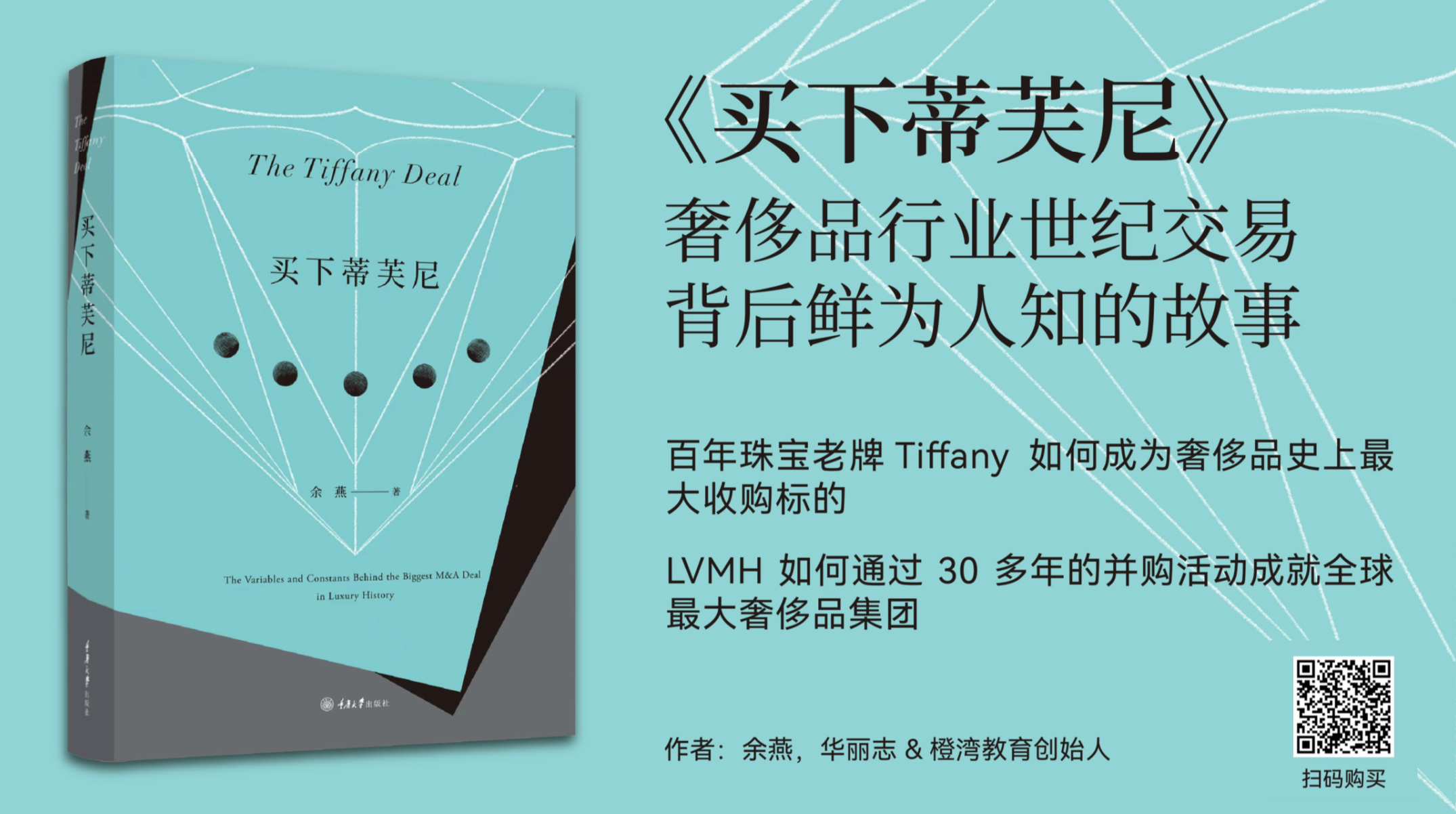 《买下蒂芙尼》是中国第一部深度研究全球顶级奢侈品牌商业历史和投资并购的专著,由重庆大学出版社出版。围绕“品牌”与“投资”两大课题,本书360度剖析了了全球头号奢侈品集团 LVMH(路威酩轩)2020-2021年以158亿美元收购美国经典珠宝品牌 Tiffany(蒂芙尼)的世纪交易: