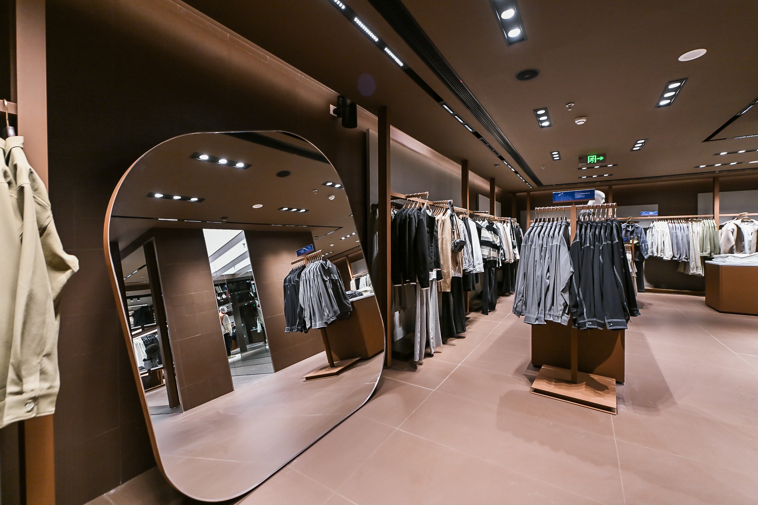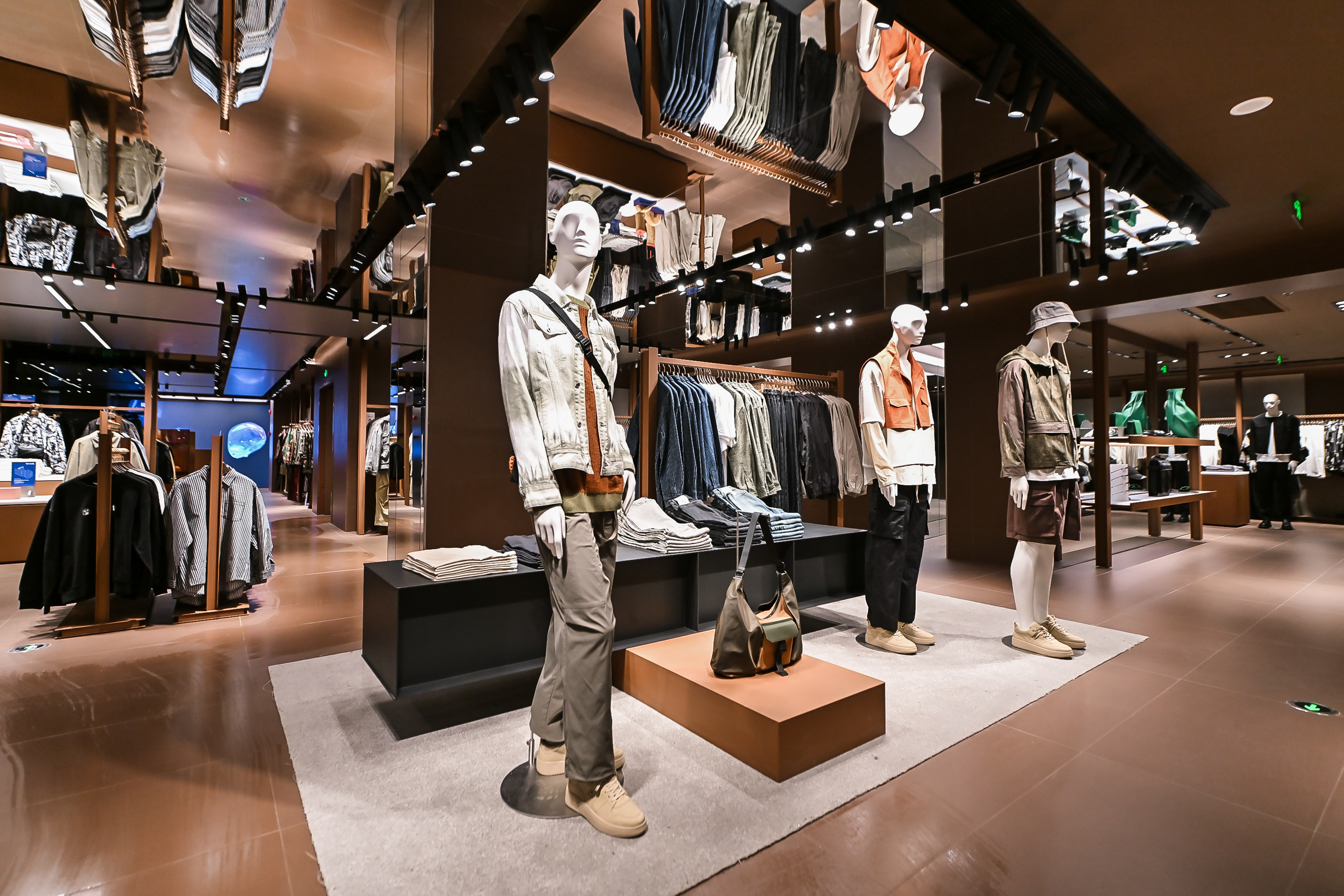 UR致力于在“大”的概念上进行深化,秉持“千店千面”的设计理念,在购物环境和顾客体验上追求“完美”。 比如上海吴江路四季坊旗舰店以“大地无界”为灵感,运用现代工业材料与自然元素,打造出独特质感的门店风格;南京大洋旗舰店则以流线型布局,融合南京活力的城市气质,展现了一个充满活力的购物空间。