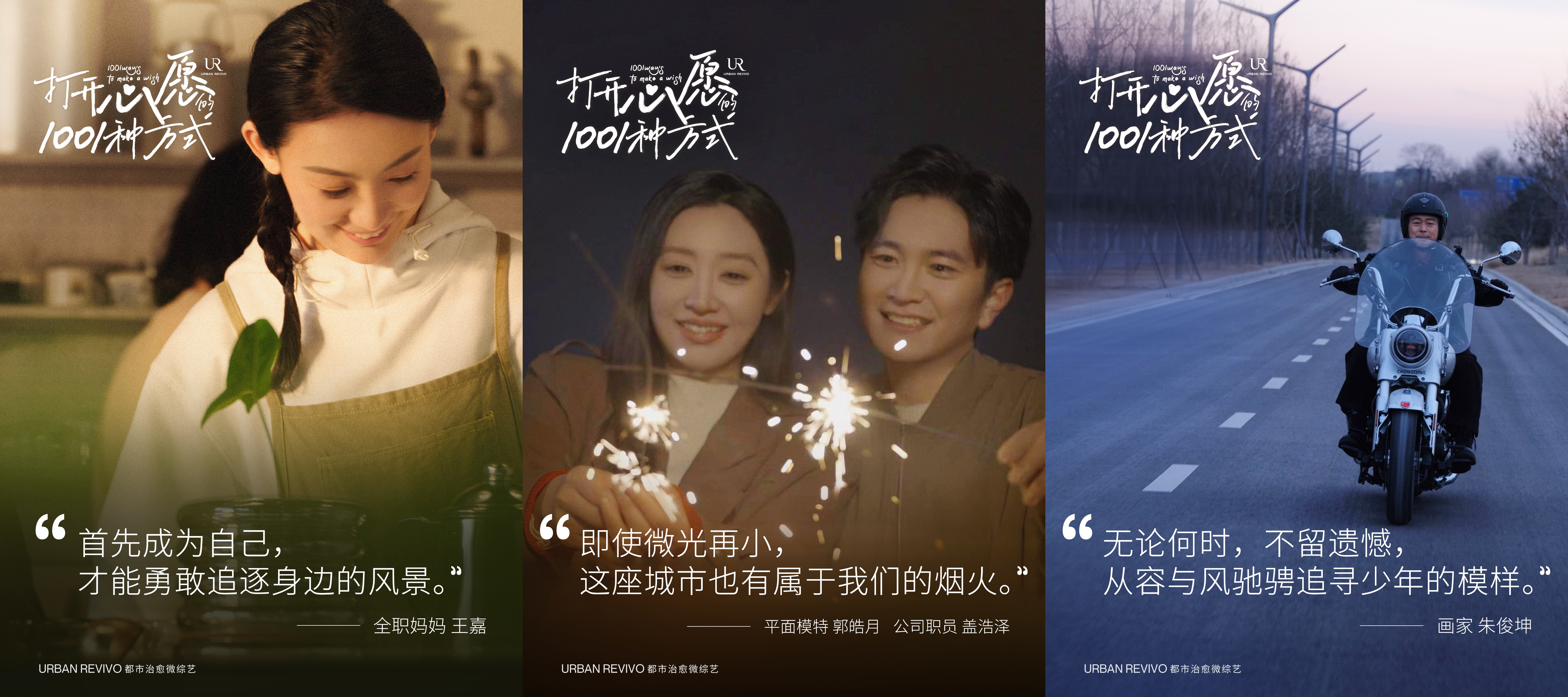 在“新的一年,新的希望”的心理暗示与情绪感召下,年轻人对美好生活的期待总是在每年的新年伊始最为强烈。于是UR 在新年到来之际,以 #打开心愿的1001种方式#为话题,策划了首部都市治愈微综艺,帮助全职妈妈、求婚情侣、素人粉丝、时尚老爸、摄影师等实现各自的心愿。
