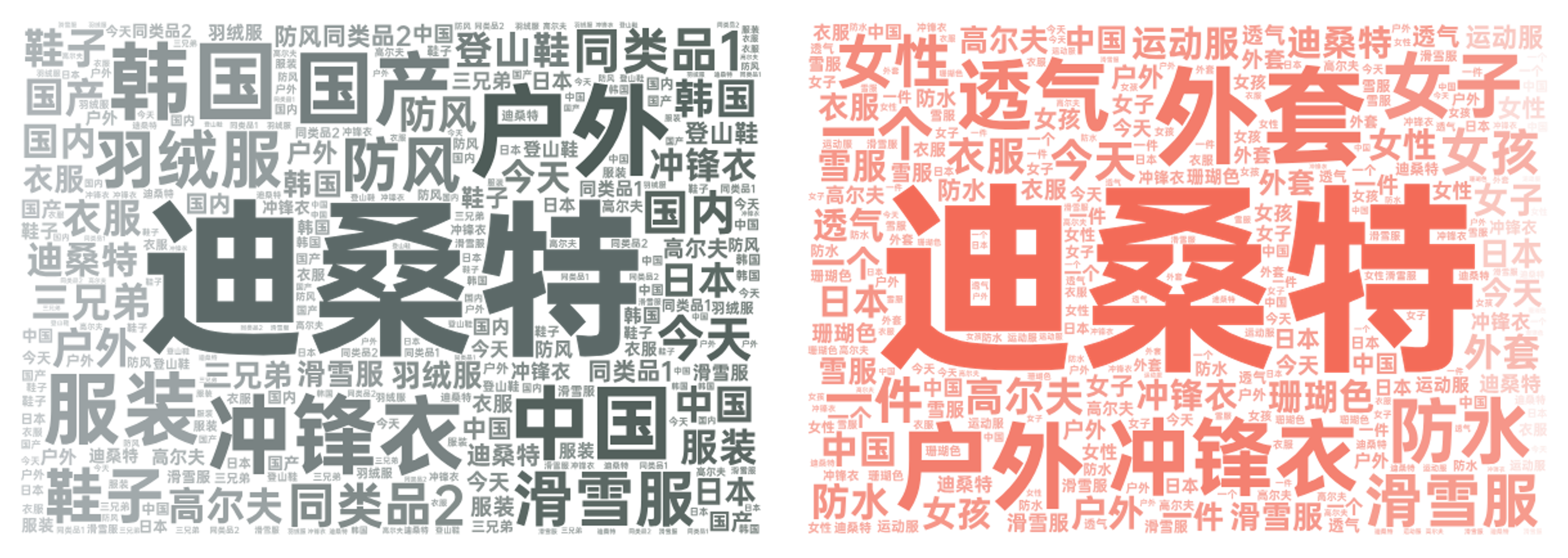 女性消费者也给予了品牌积极正向的回应。活动前后,迪桑特品牌词云对比给出了直观的改变:活动后,迪桑特的品牌关键词已不止于冲锋衣、滑雪服、防风等户外领域,女性、外套等也跃居瞩目的地位。#雕刻我动线 活动助力迪桑特在女性产品维度占据用户心智,成为品牌拓展消费群体的关键一役。