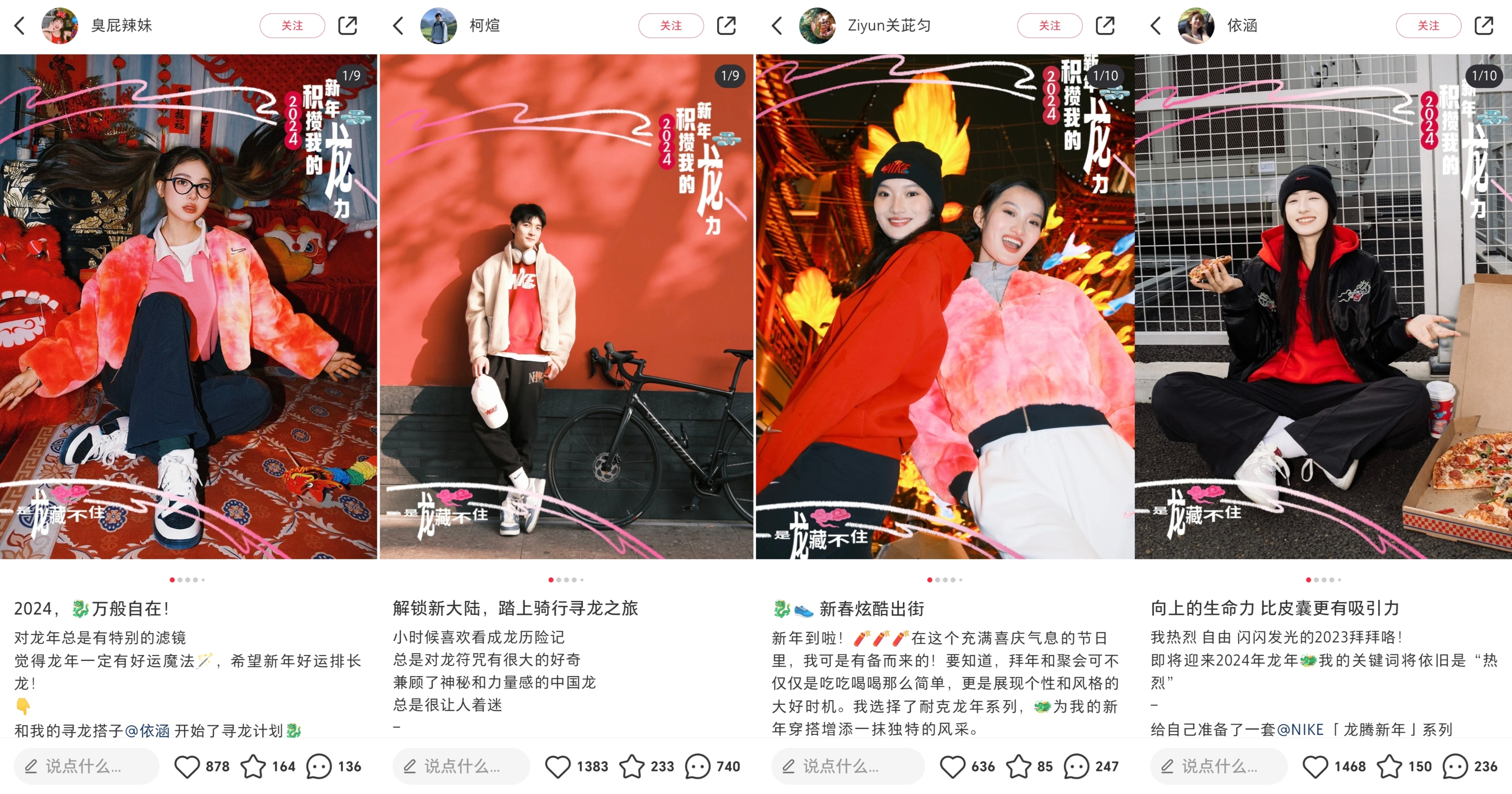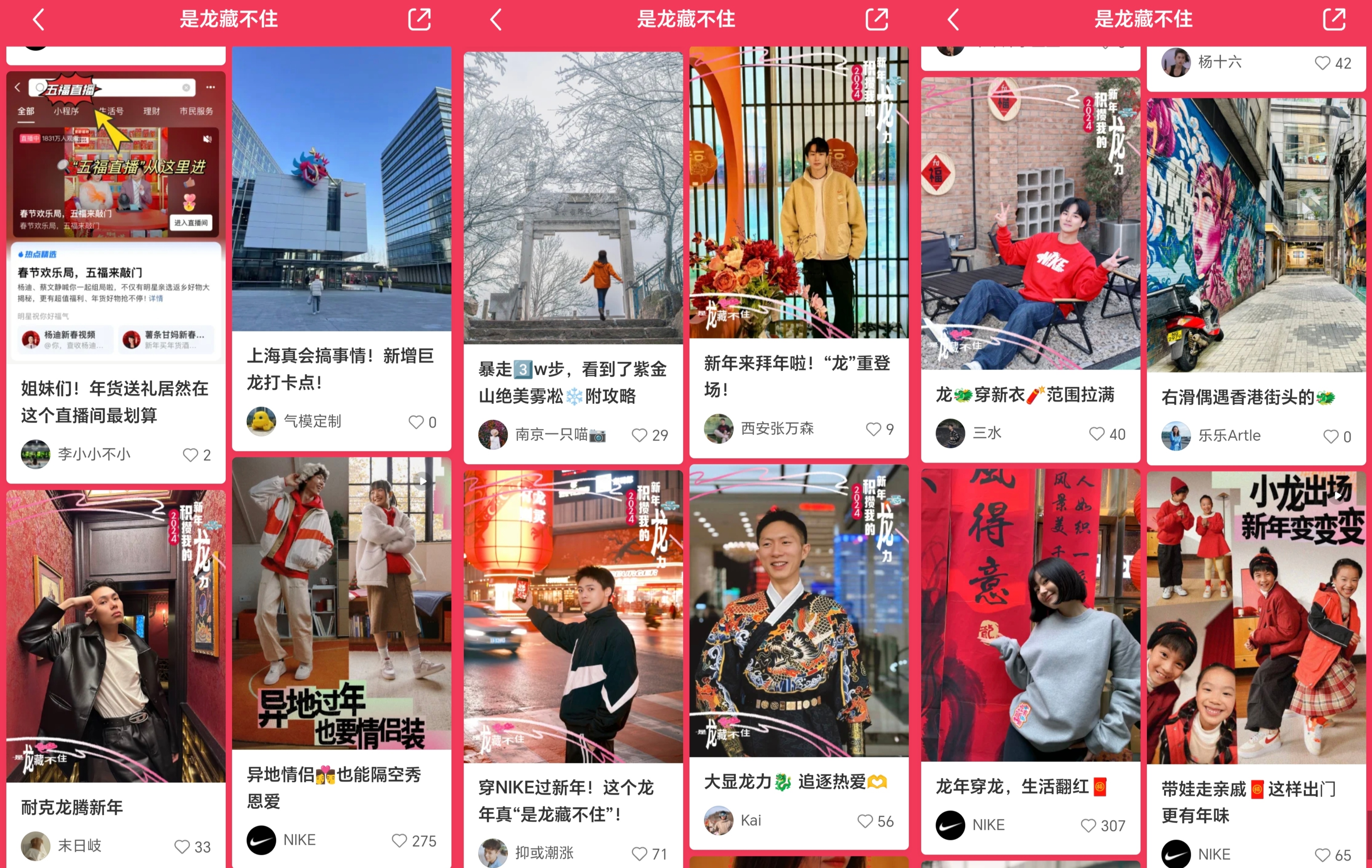 2024龙年春节,小红书携手耐克打造CNY新年活动,以#是龙藏不住 为活动话题,为耐克龙腾新年系列上新造势。