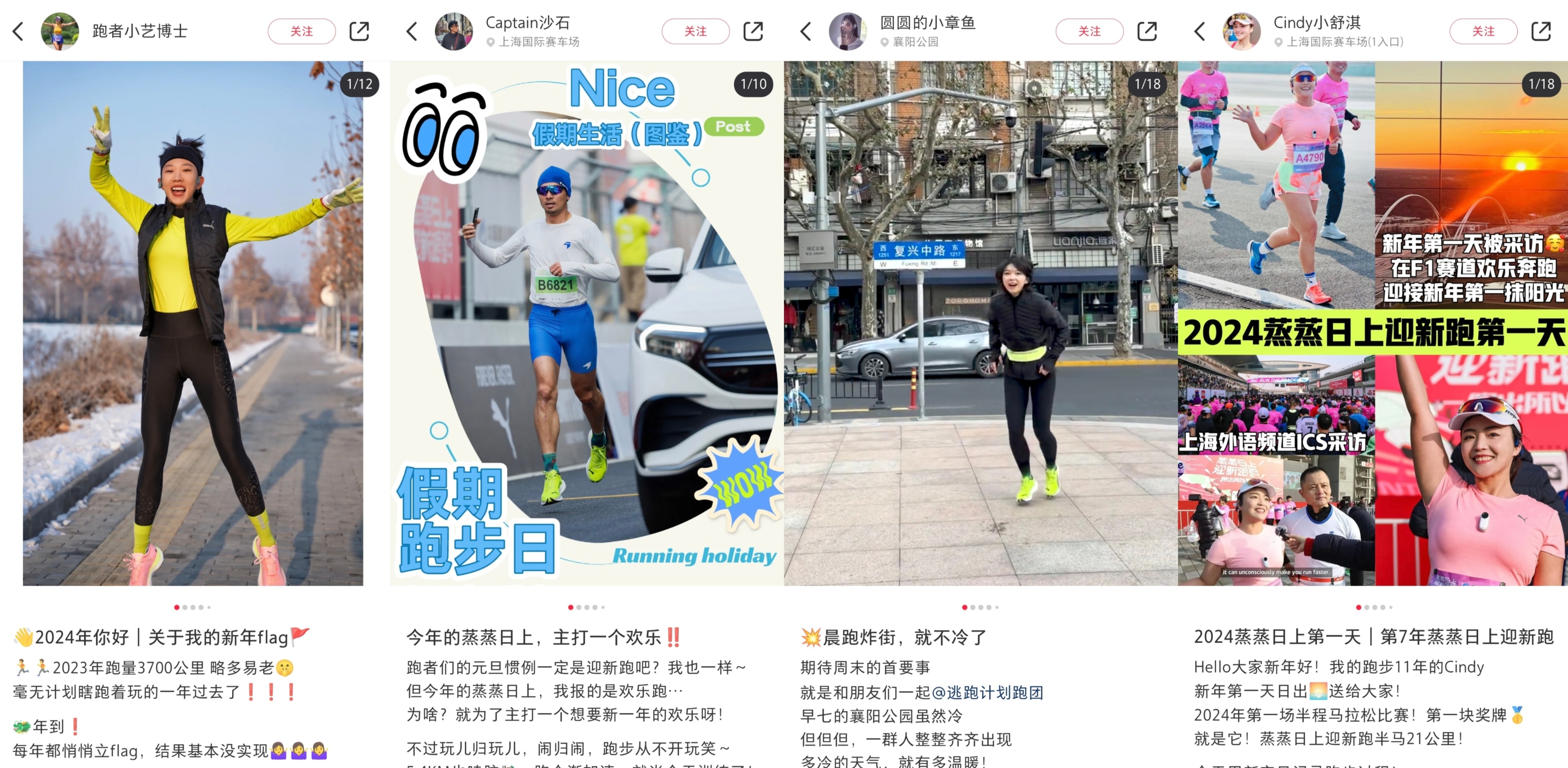2024年元旦,彪马“上海蒸蒸日上迎新跑”首先从小红书线上预热开启,参赛选手、跑步KOL等分享比赛经验、赛前准备等笔记,精准捕捉兴趣人群。除了上海外,活动还开启多个城市跑团联动,吸引各行各业的爱好者加入,最后再次回归线上,分享活动经历。