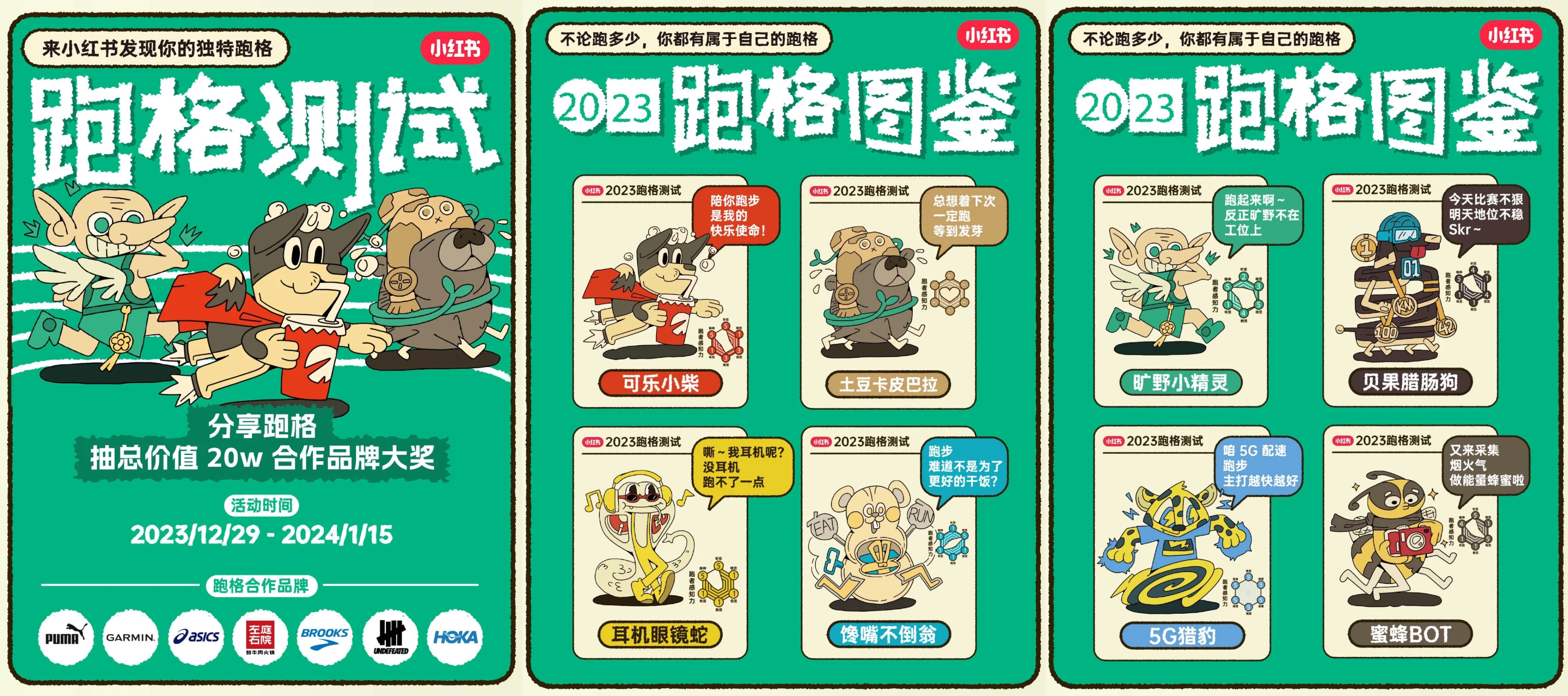 为了丰富活动形式,小红书还结合当下热门的MBTI人格测试,打造“我的年度跑格”创意测试,吸引更多年轻新手加入解锁跑步人格,在增加跑步的可玩性、乐趣性的同时,将跑步类比为个体人格或DNA中的固有属性,用户与跑步形成了更深层次的认知捆绑。
