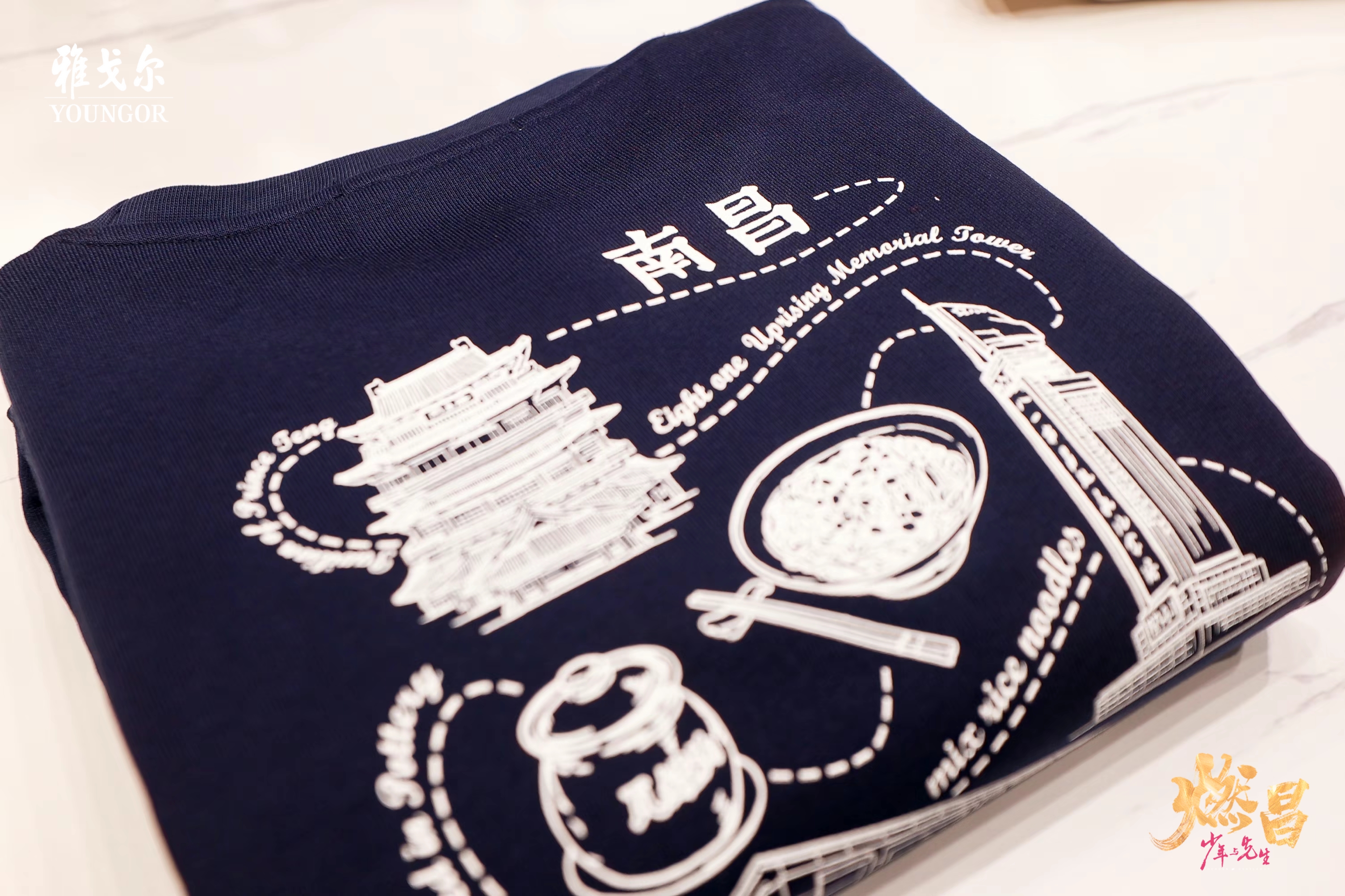 走进店内,映入眼帘的是一面“中国衬衫”展示墙,雅戈尔的经典款衬衫像档案馆的文件一样分门别类地摆放,秩序井然;楼梯转角处,描绘着滕王阁和赣江美景的巨幅风景画也格外吸引眼球,彰显门店的在地化元素。