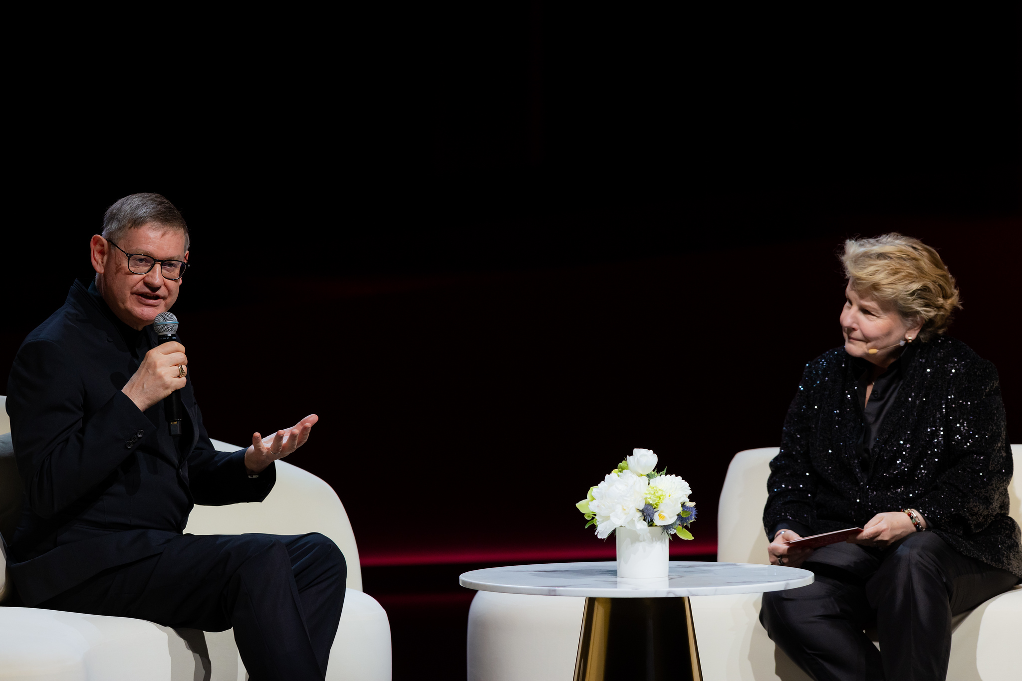 卡地亚全球总裁兼首席执行官思礼乐 (Cyrille Vigneron)在颁奖典礼现场致辞(左一)