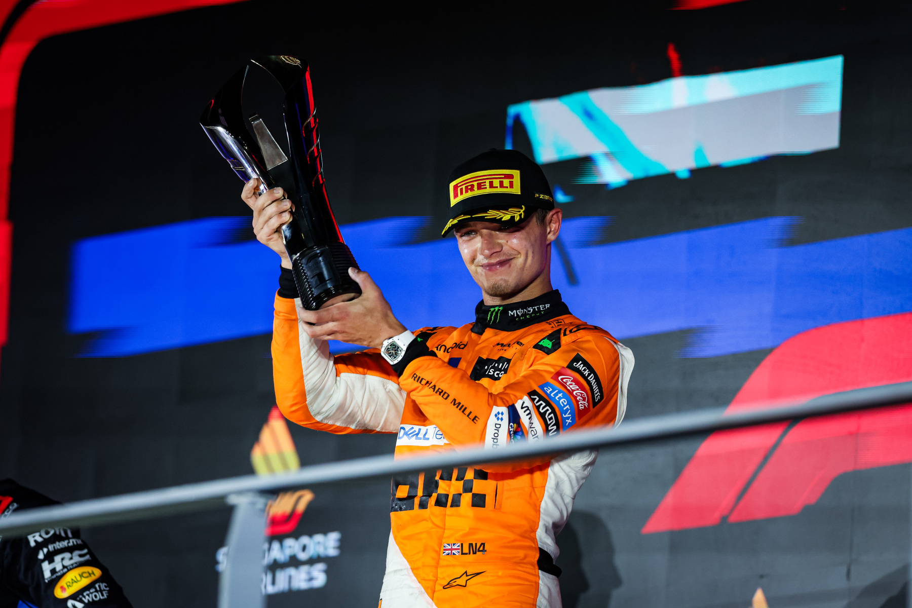 上图:今年4月,Lando Norris佩戴RICHARD MILLE与迈凯伦的联名腕表,在上海国际赛车场举办的F1中国大奖赛上领奖