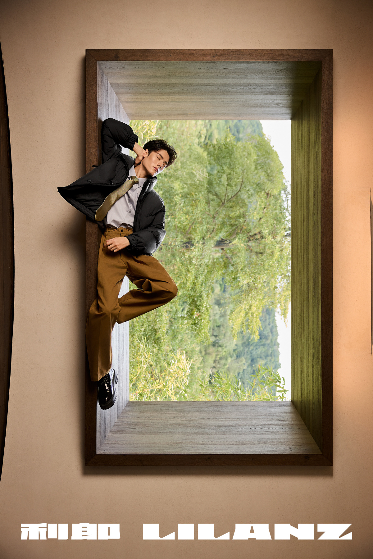 “陶瓷始于土,成于火,是生活与时间的艺术,等土干,等火旺,等瓷凉,便会遇见惊喜与刚刚好。将羽绒服化作陶土,通过分割与绗线打造立体版型。松、竹、植物的元素被演化在服装拉链等细节,来传达物与人与自然的交融。色彩图形上以深色为主基调,呈现柴烧后的器物在松木火炼中触灰成釉而成的丰富天然肌理,随着光影呈现变化。整个系列在简约的氛围中,处处彰显高雅的质感,也让每一件“陶瓷”羽绒服饱含人情与陈鹏、利郎共同传达的造物者的温度。”