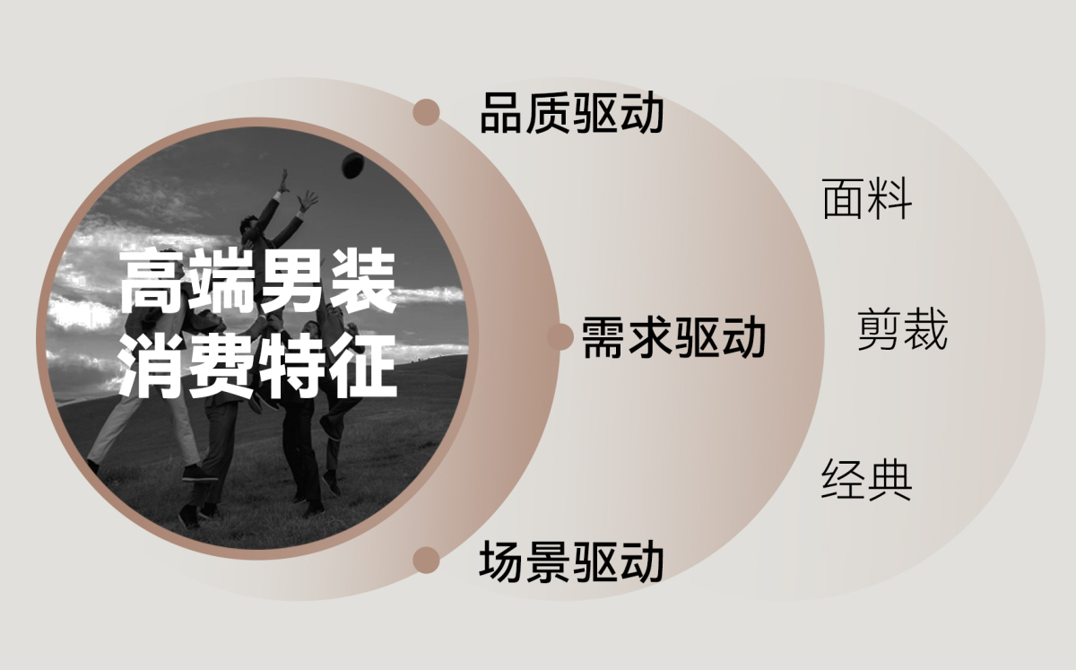 不同于女装的潮流多变和风格多样,男装领域的大部分中高端消费者展现出更加理性的购物倾向。他们对面料品质、适用场景、以及个性化定制有着明确而具体的需求。