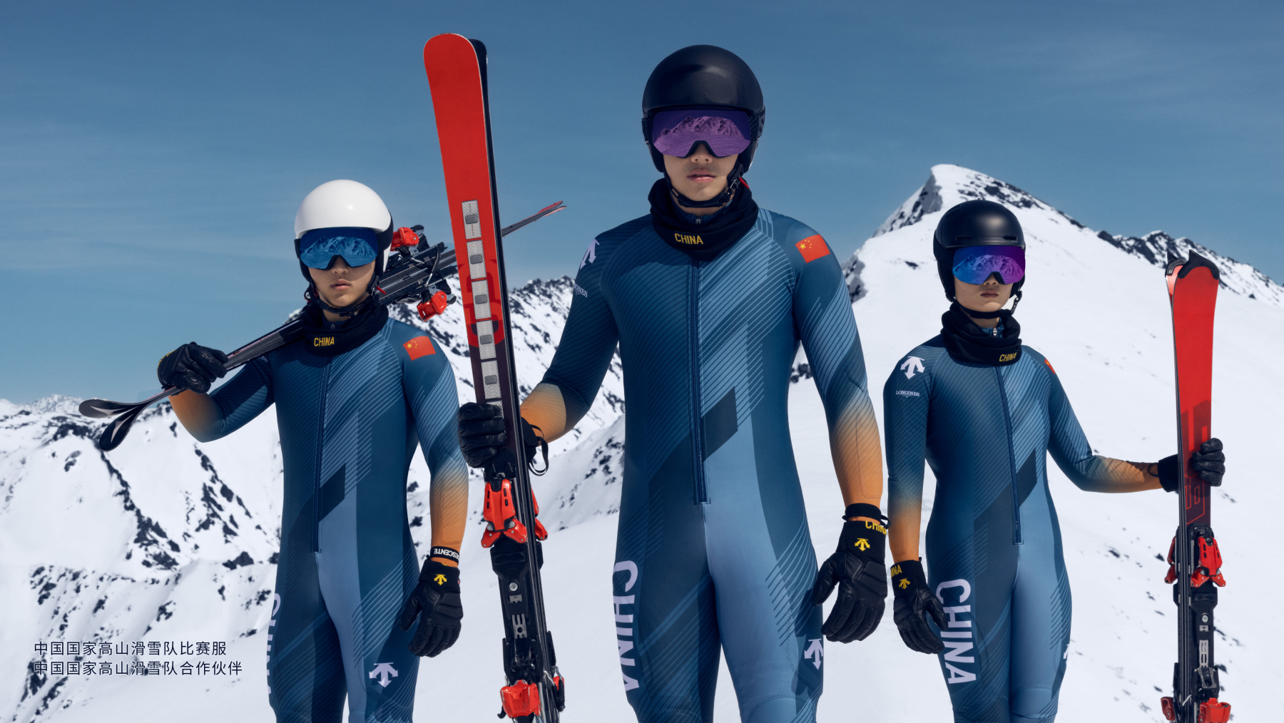 上图:中国国家高山滑雪队身着迪桑特全新比赛服