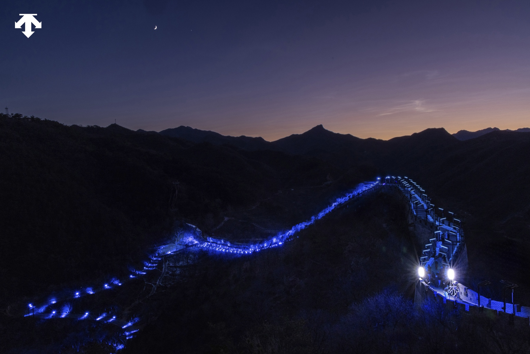 蜿蜒宏伟的长城雪道被灯光点亮,寓意迪桑特将持续 “迎峰而上”。