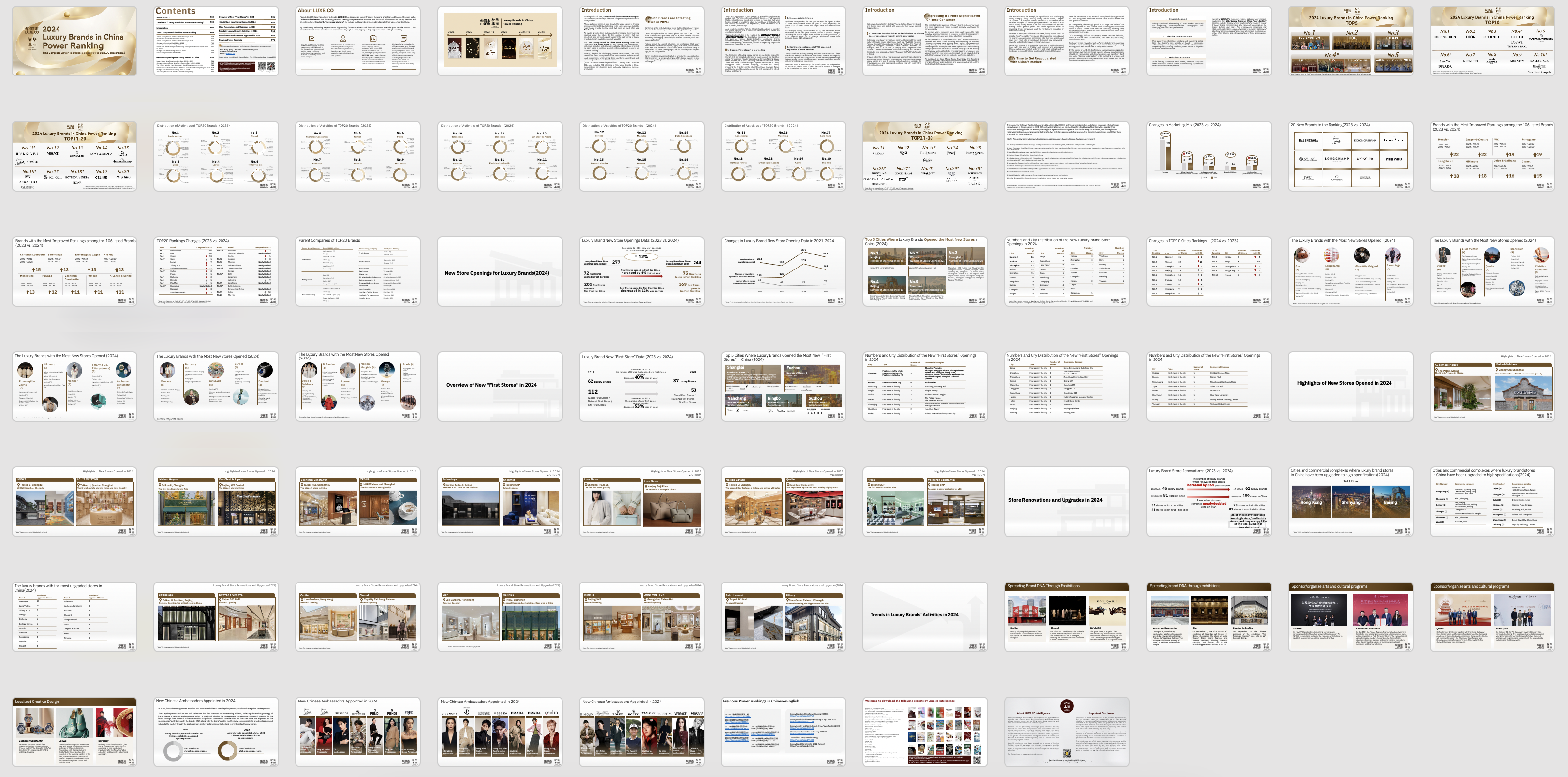 In this FREE edition (53 pages), you will find data analysis and the rankings according to the level of activities of luxury brands in China's market in 2024: