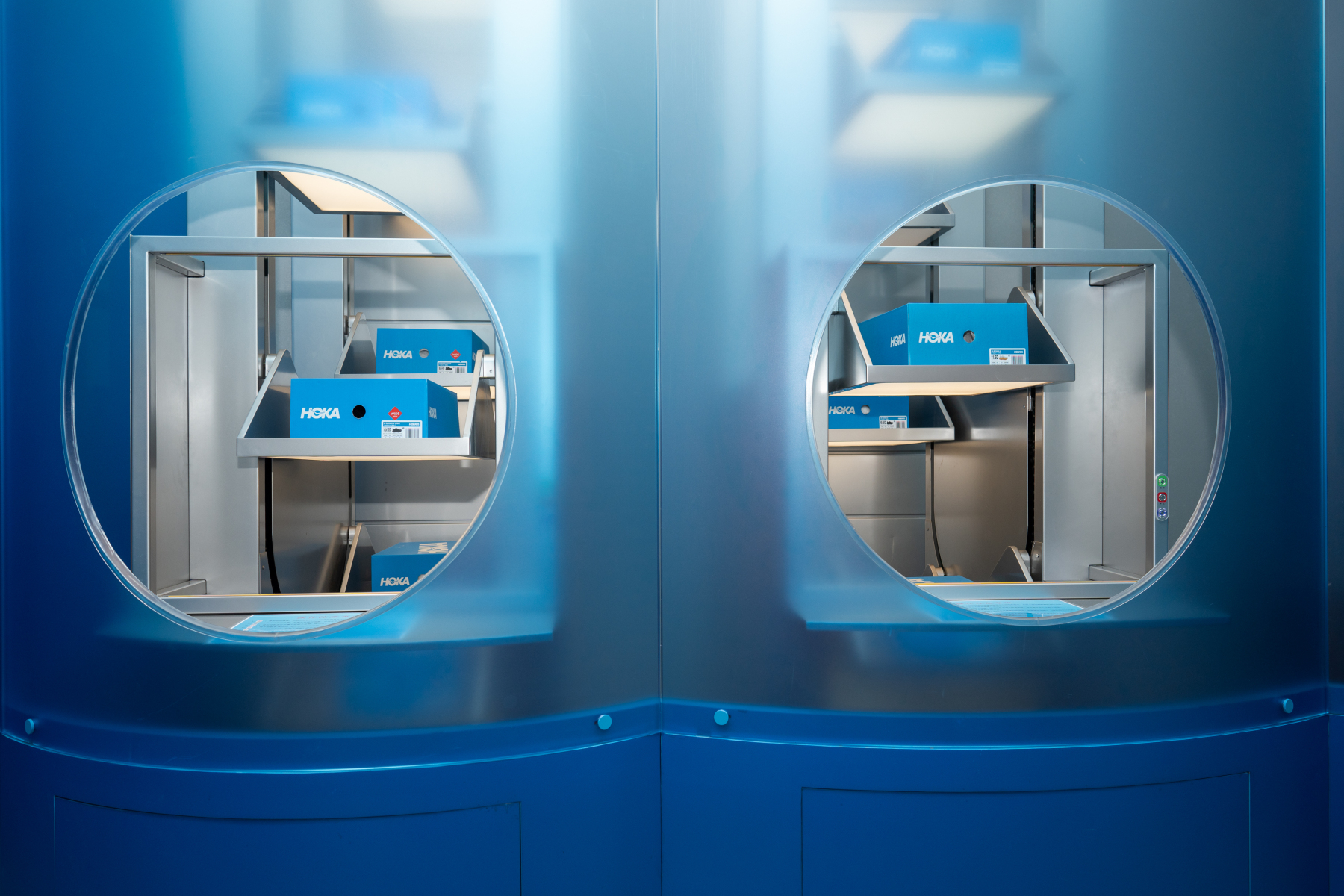 B1层是品牌精神的核心展示区,通过动态影像技术生动还原品牌发源地阿尔卑斯山脉的四时景象,并展示了HOKA的核心技术和鞋款进化。“五大金刚”陈列区域科技感十足,每当将鞋款拿起时,桌面上即会展示该鞋款的详细介绍。此外还重磅打造了“HOKA LAB飞跑研究所”,这是国内首个提供7组专业测试的全链路体能测试空间。