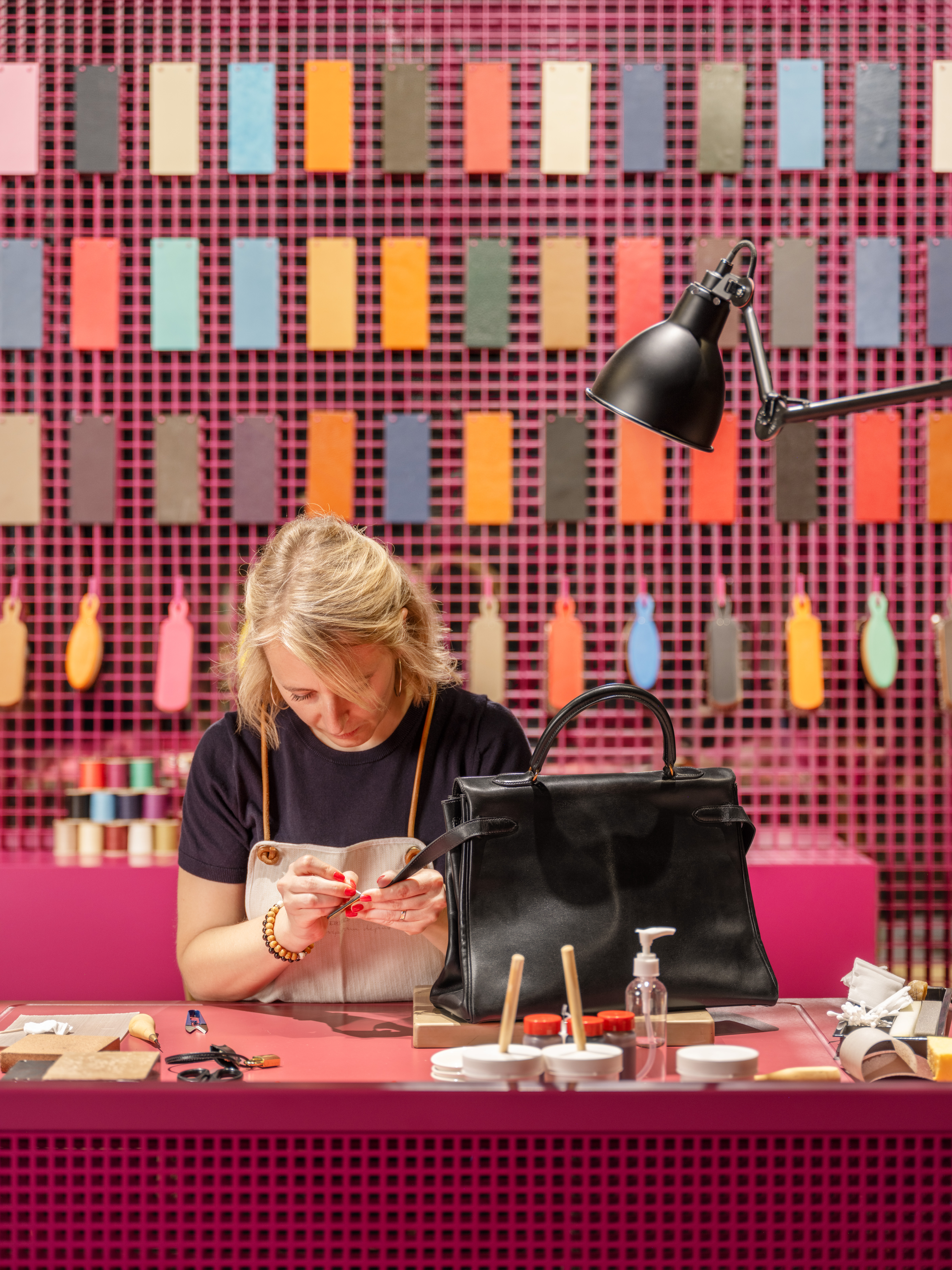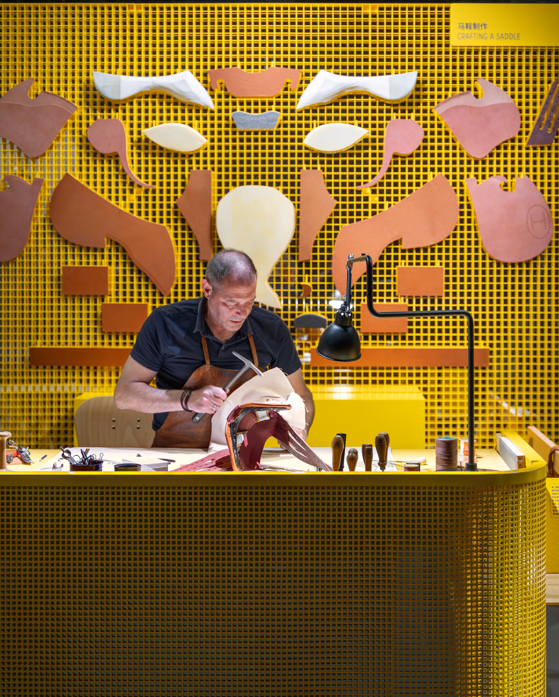 在创新与创意交织的活力之都深圳,来自爱马仕近十个产品部类的工匠带着他们的工具箱齐聚于此,展示他们钟爱的材料,使公众得以一睹他们的专业技术、手艺诀窍以及独家的工艺知识。活动布景以工匠操作台为灵感,构筑舒适开阔的空间,聚焦根植于爱马仕历史与生活的四大主题:工艺传承、卓越材质、持久承诺与地区纽带。