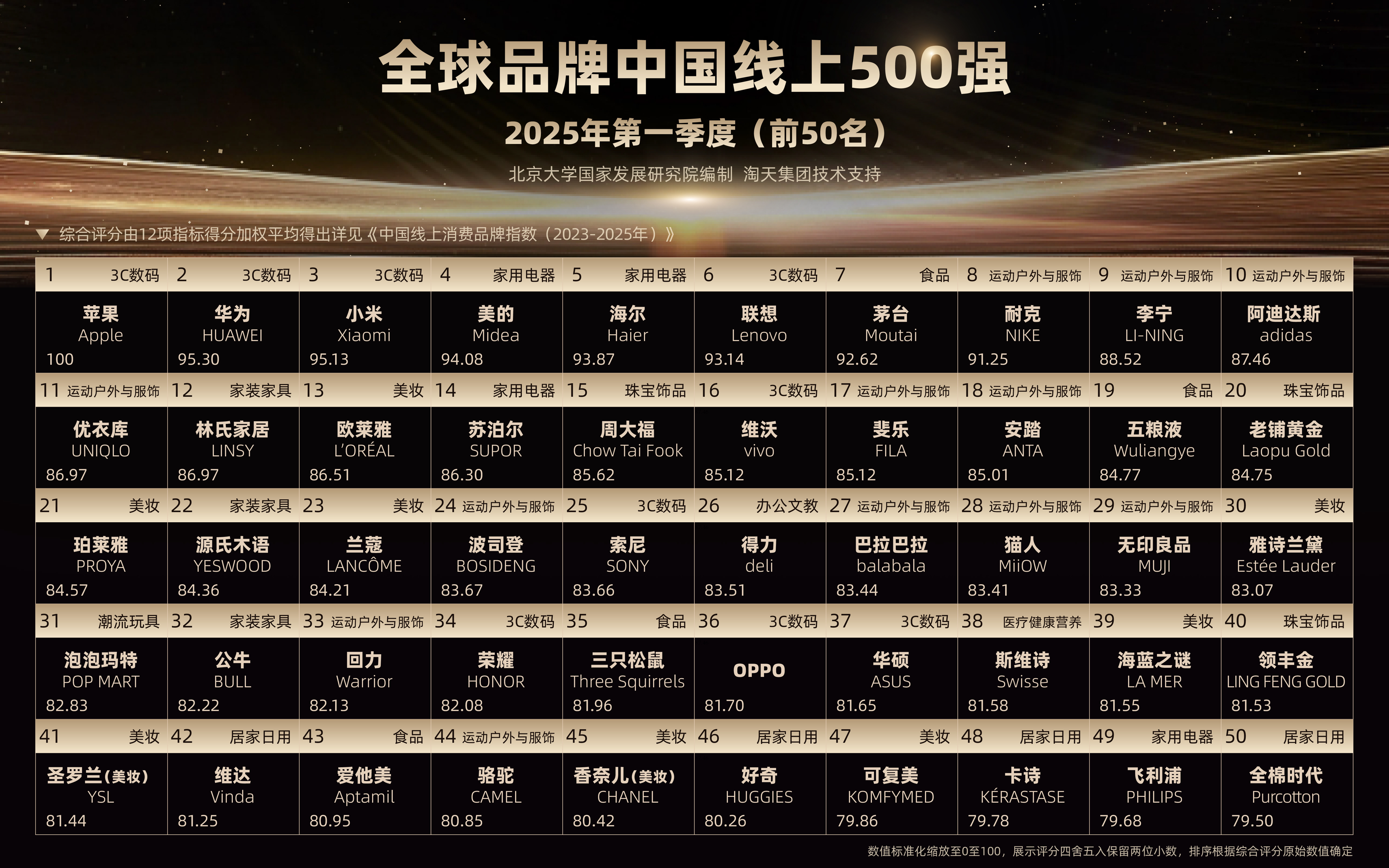 值得关注的是,这份榜单由淘宝天猫提供技术支持,覆盖约十亿活跃用户的真实购买行为,从搜索、价格、销售、会员、好评等多维度构建了一个综合性的评价体系,客观反映了品牌在中国市场的表现。