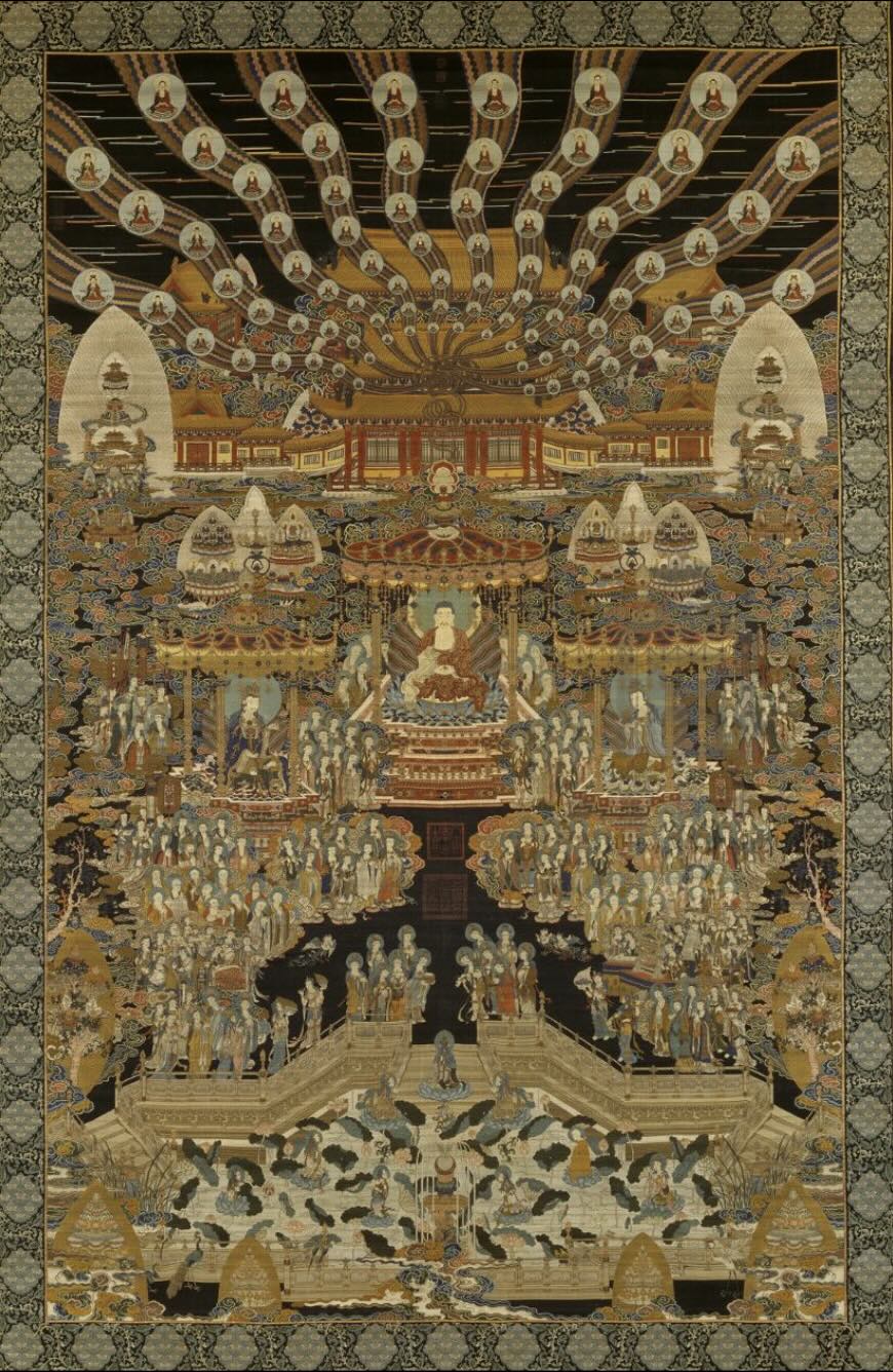 上图:清代宋锦作品《西方极乐世界》,现藏于北京故宫博物院