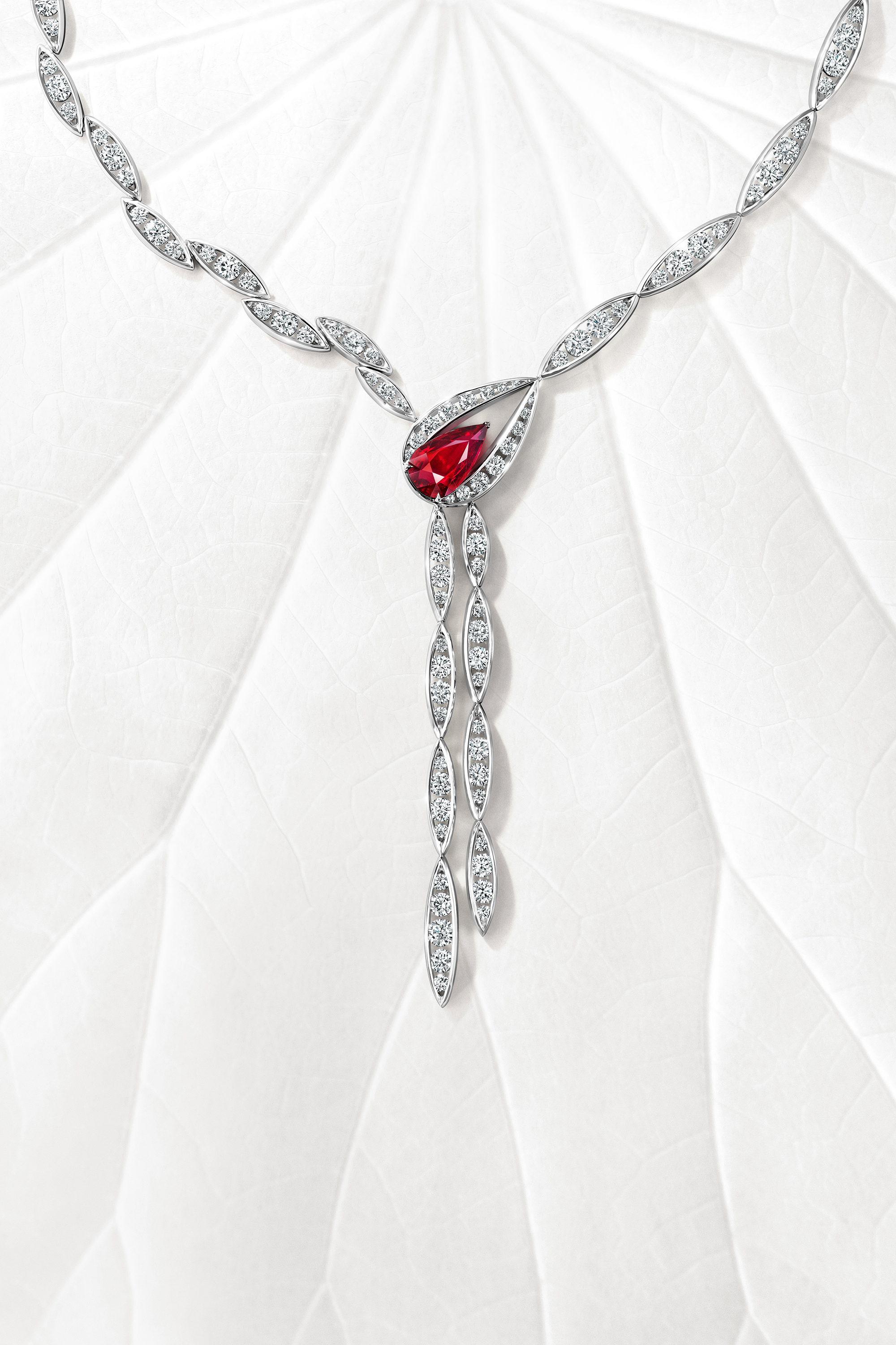 “莲华清韵”经年累月去严格甄选无热处理宝石,如部分作品采用珍稀的鸽血红宝石,亦巧妙搭配粉色尖晶石、紫色蓝宝石等多样彩色宝石,每一抹光芒及色彩都跳跃着大自然蓬勃的生命力,为作品增添独特魅力,映照莲的顽强不屈、纯粹美好。