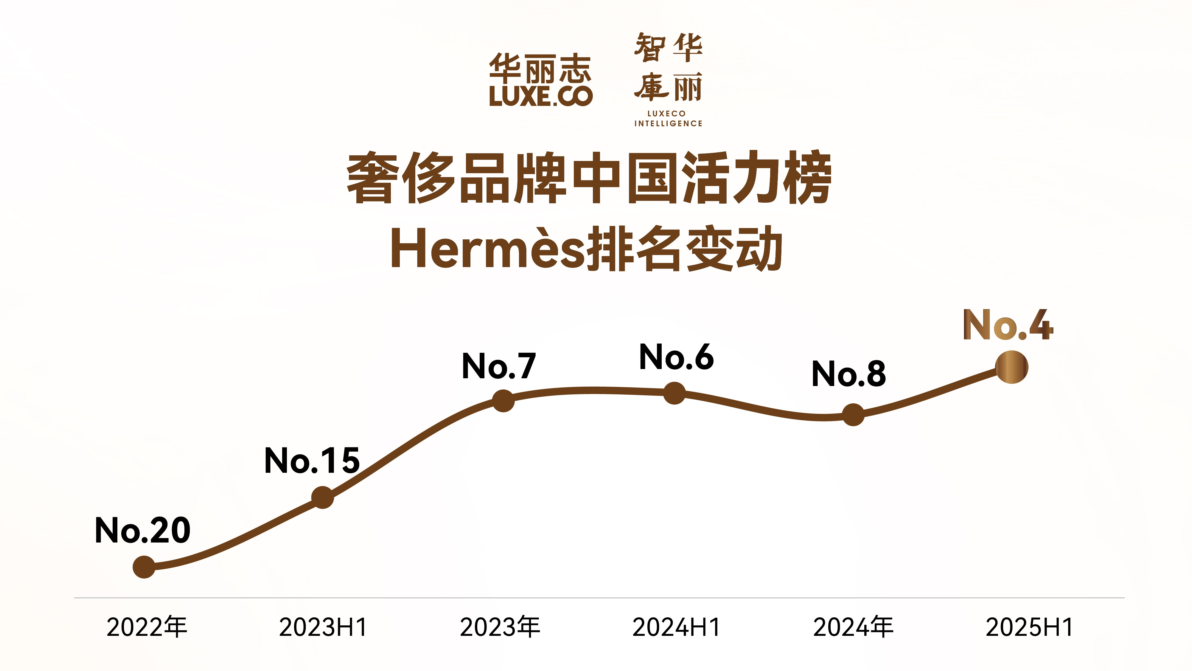 爱马仕在「奢侈品牌中国活力榜」的排名变动直观反映出,品牌在中国市场的投入和建设在稳步提升。爱马仕在「奢侈品牌中国活力榜」的排名从2022年第20位,已经逐年稳步提升至第4位。