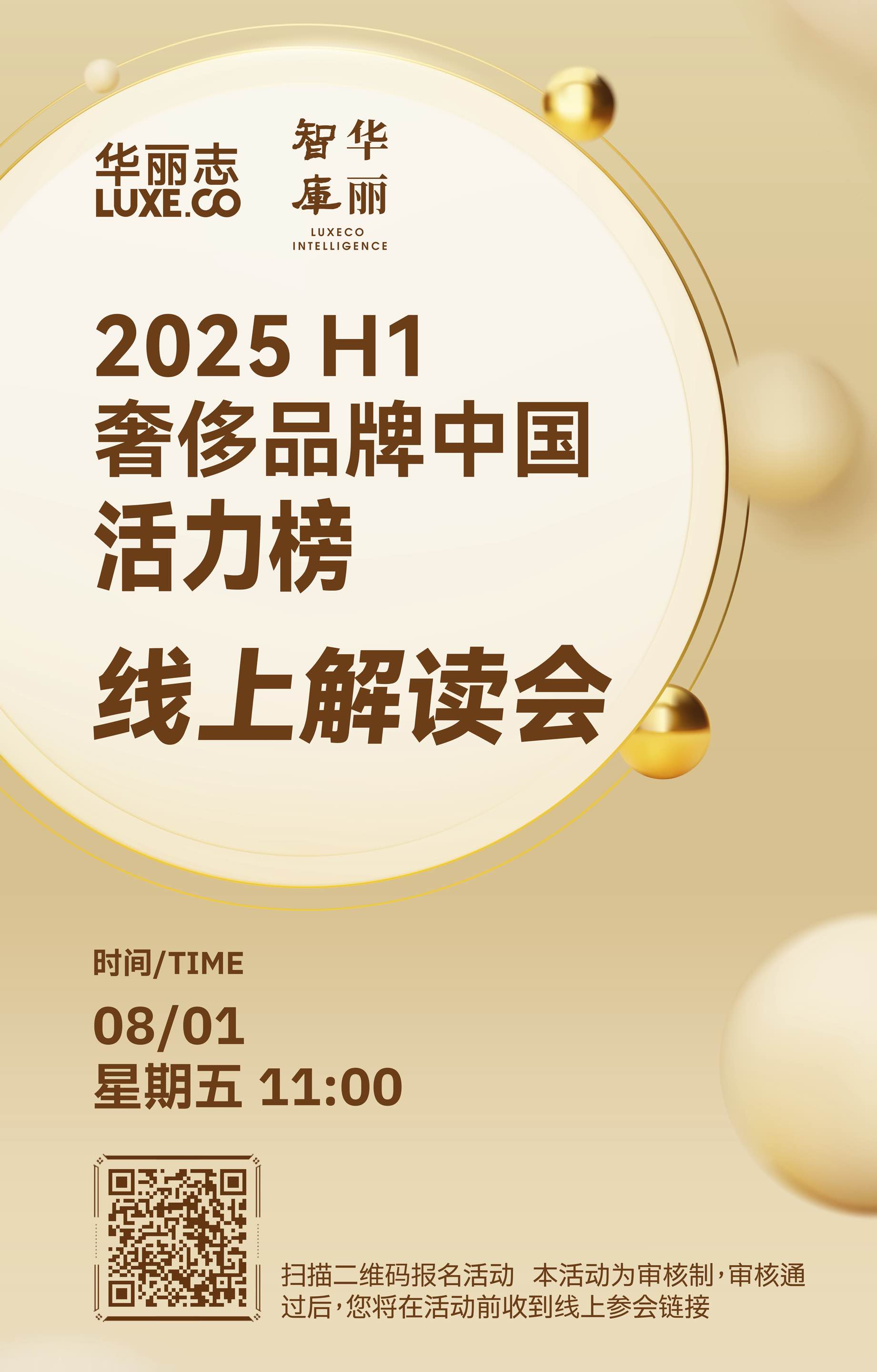 在华丽志于8月1日举办的线上解读会上,华丽志高级副总裁、华丽智库总监王琼将深度解读「奢侈品牌中国活力榜2025H1」报告全文,并披露更多深层数据和独家洞察。