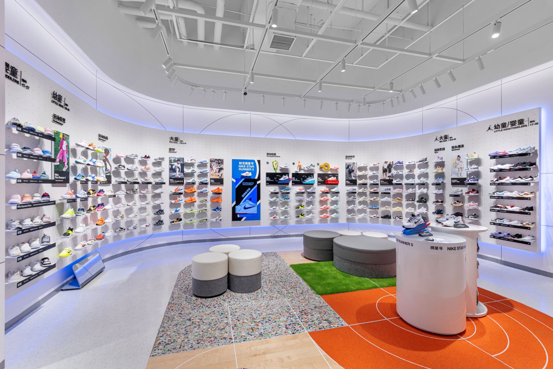 从这些细节可以感受到,耐克儿童对于成人和儿童差异化的思维习惯有着深刻理解,并以此为基础重构了零售空间的设计逻辑。