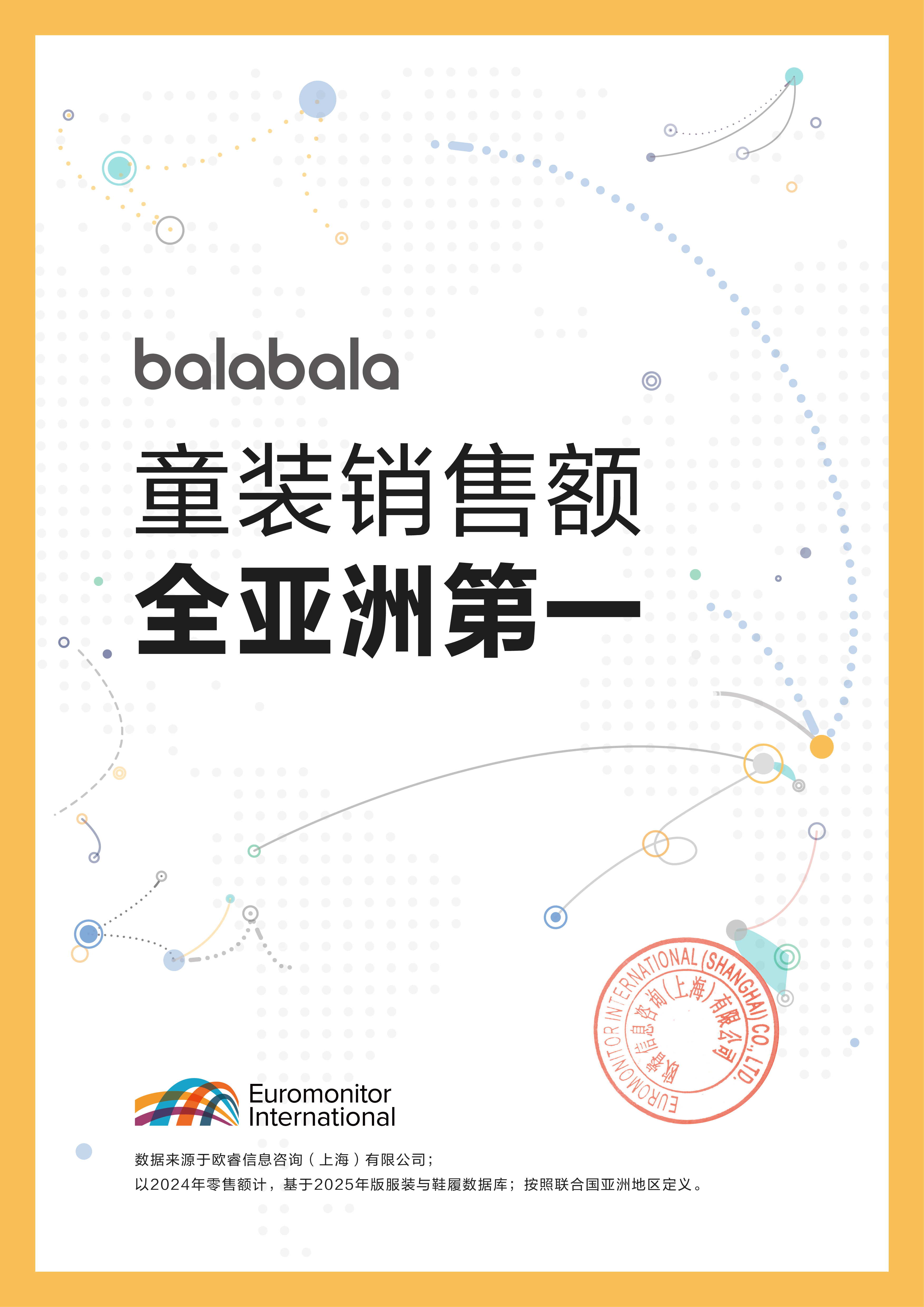 成立23年来,巴拉巴拉已经陪伴8000万中国儿童成长。近期,巴拉巴拉刚刚获得欧睿国际认证为“童装销售额全亚洲第一”。