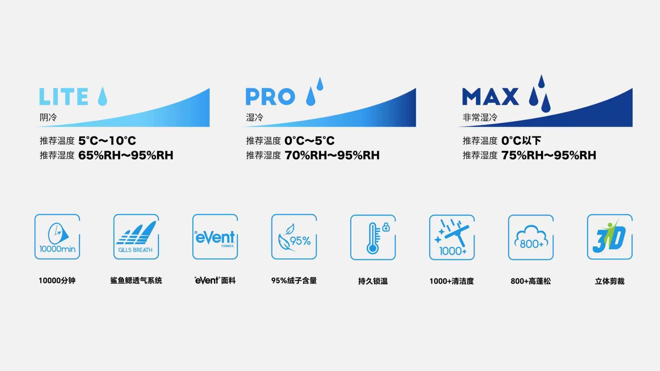 在现实生活中,消费者又该如何选择羽绒服,来抵抗不同程度的湿冷天气呢?