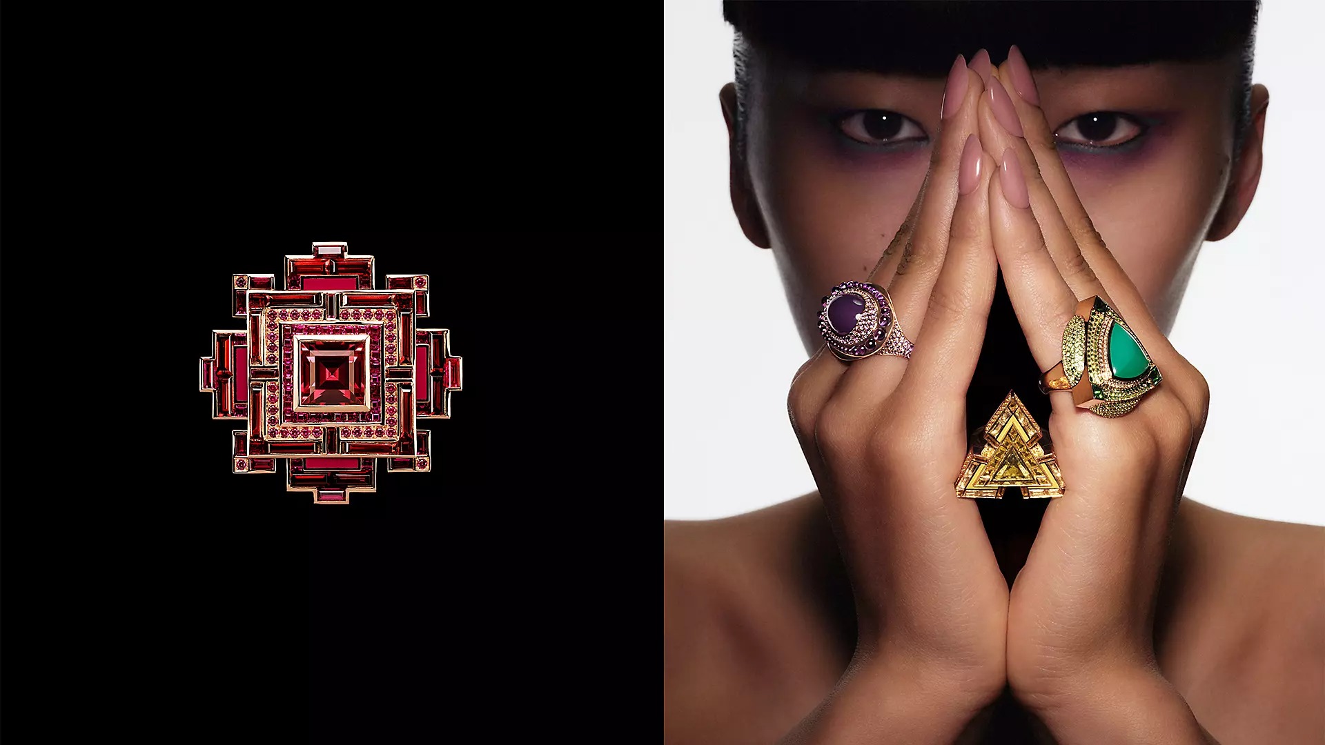 其中,金饰多采用18K金、玫瑰金、白金等材质打造,银饰全部使用925纯银制作;Haute Bijouterie(高级饰品)则多采用红宝石、蓝宝石、碧玺、祖母绿、黑色尖晶石等彩色宝石,搭配珍珠、珐琅、母贝等材质。