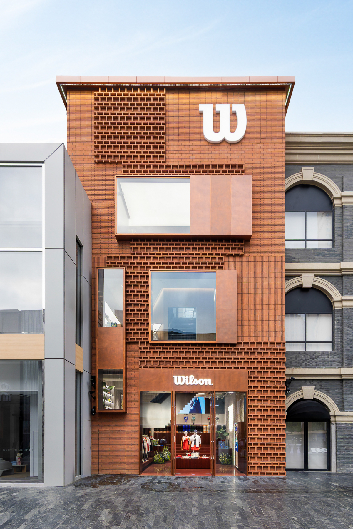 以武汉SKP“砖阁”概念店为例(下图),品牌巧妙汲取武汉传统市井民居的“红砖”元素,融合美式网球俱乐部风格,打造了集试打、穿线与社交于一体的复合空间。