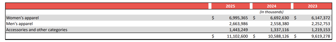 截至2025财年末,公司库存按金额增加了18%至17亿美元,按件数计算增加了6%。