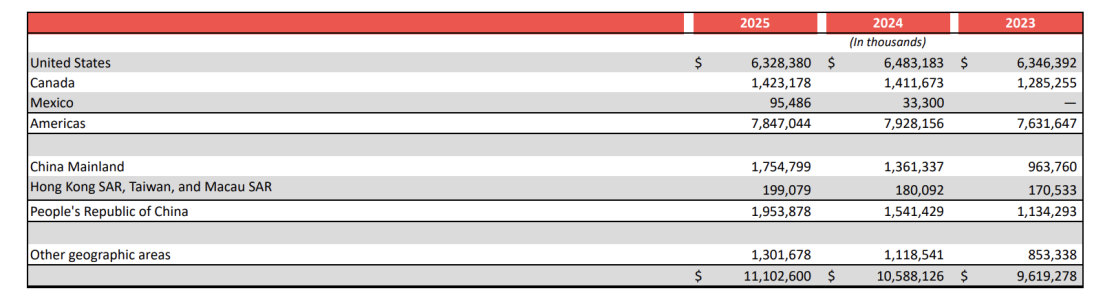 - 中国港澳台地区:2025财年全年净营收达到1.99亿美元,较2024财年的1.8亿美元稳步增长。