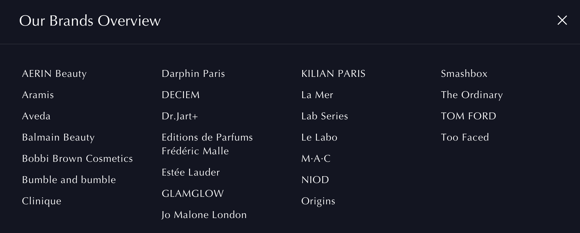 雅诗兰黛集团是全球高端美妆行业的领军企业之一,集研发、营销与销售于一体,提供高品质的护肤、彩妆、香水及护发产品,旗下拥有20多个品牌(详见下图),包括 雅诗兰黛(Estée Lauder)、海蓝之谜(La Mer)、倩碧(Clinique)、祖玛珑(Jo Malone)、勒莱柏(Le Labo)等。2022年,雅诗兰黛集团以28亿美元收购了美国设计师品牌汤姆福特(TOM FORD),这是公司迄今为止规模最大的一笔收购交易。
