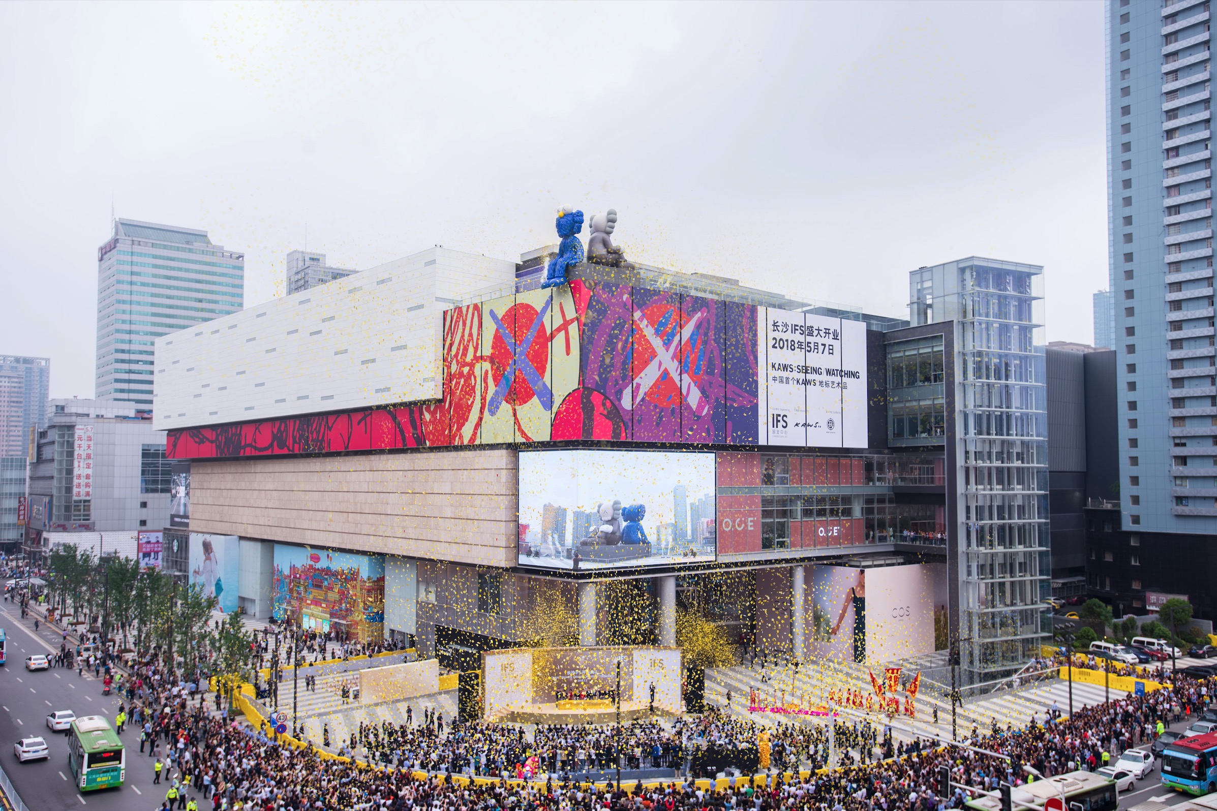 此次九龙仓长沙IFS的开业,邀请到国际艺术家KAWS首度与商业深度合作,联同策展单位AllRightsReserved带来KAWS大中华区首个铜制永久巨型雕塑艺术品——SEEING/WATCHING。它由KAWS的代表作COMPANION和BFF组成,坐落在购物中心7楼的雕塑花园上。
