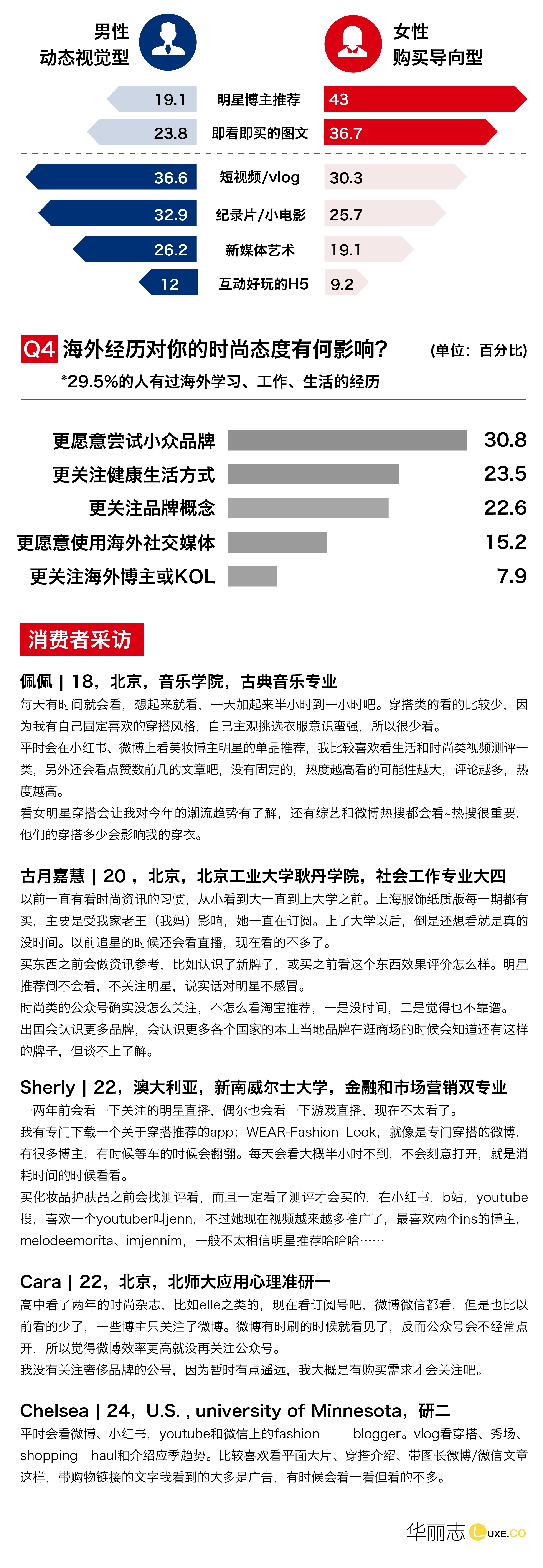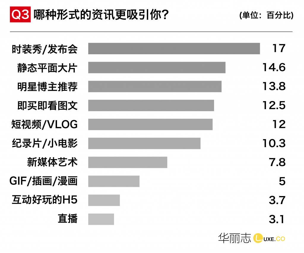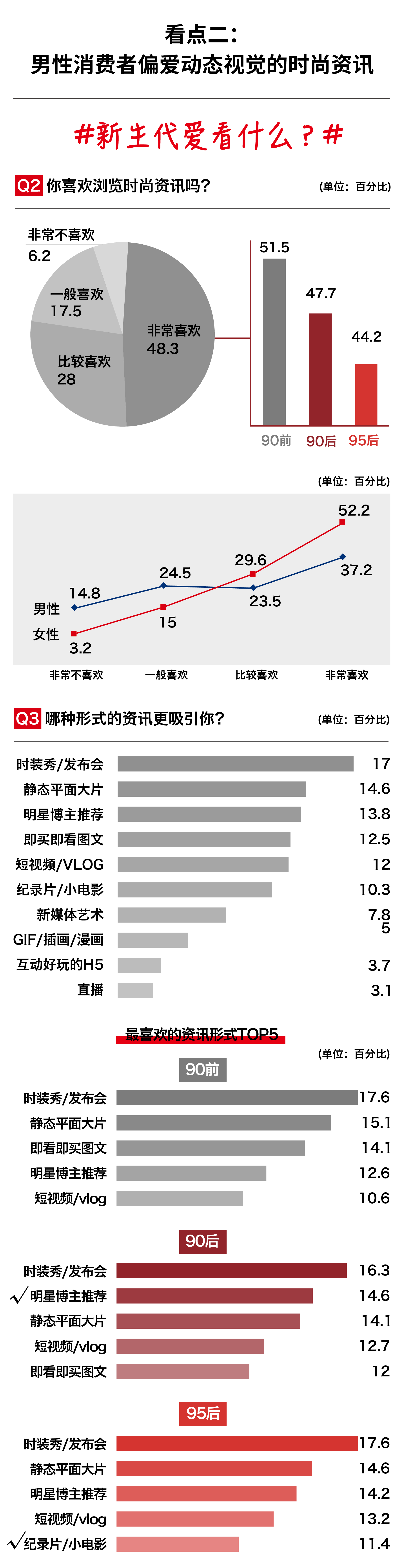 随着中国社交媒体、资讯传播和零售领域商业模式的迅速迭代,90前、90后和95后三个年龄段偏好的时尚资讯形式有所不同。