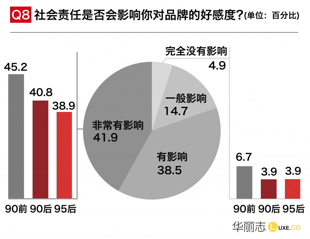 随着全球各大奢侈品和时尚品牌越来越重视自己的企业形象,不断强化在环保公益方面的举措和传播,中国的年轻消费者在这方面的敏感度也在不断提升。他们拥有比老一代更好的经济基础,真诚相信世界会变得更加美好,当面临极大丰富的商品选择时,他们会愿意选择那些更具有社会责任感的品牌。